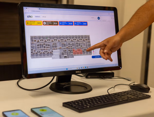 Beyond notifications, EKO can also coordinate the physical environment, automatically turning on lights, unlocking doors, and enabling elevator access to help response teams move quickly through the building when every second counts.