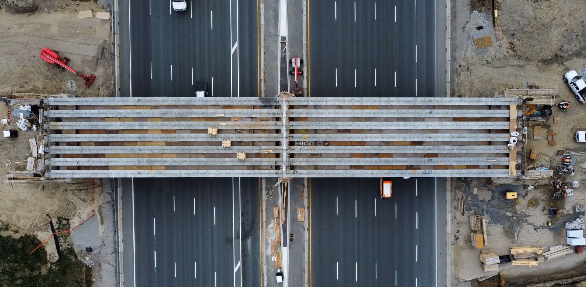 At 80 metres long and 14.6 metres wide, the bridge was built using post-tensioned NU-1400 girders—among the first applications of this technology in Ontario. Structural concrete work included abutments, piers, deck, barrier walls, and 300 metres of cast-in-place retaining walls, all self-performed to ensure quality and efficiency.