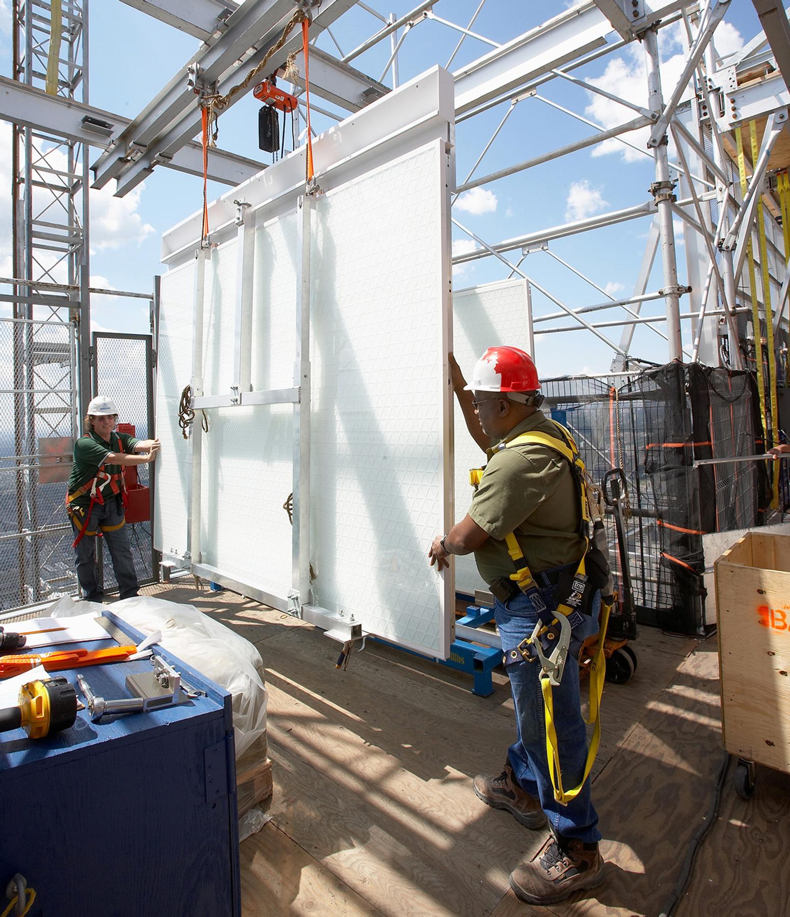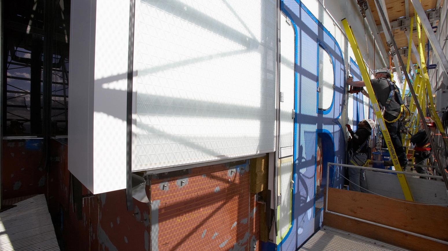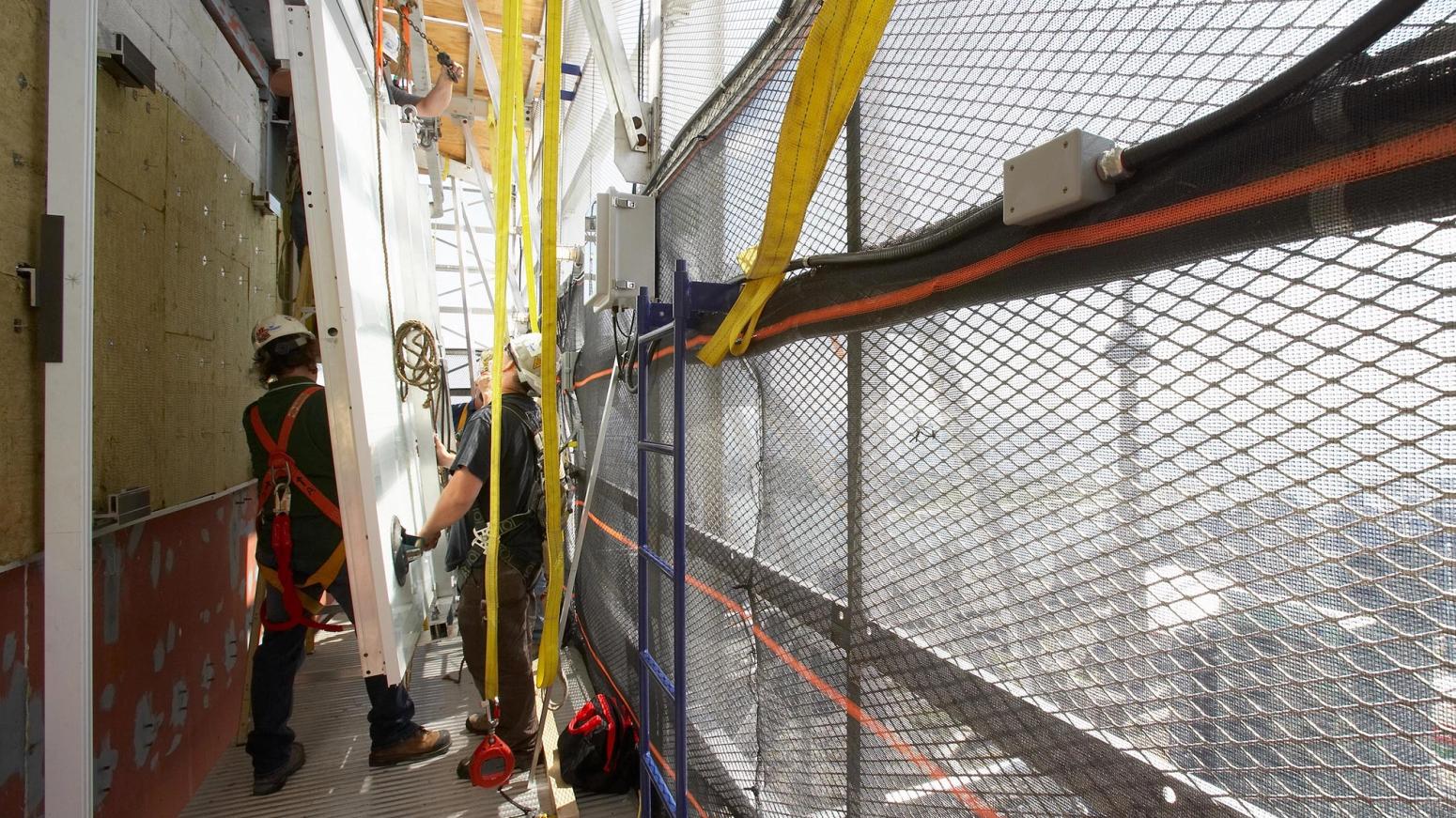 Access to the building for workers and materials was provided by a custom designed, three-level, suspended platform system that completely encompassed the perimeter of the building. This system allowed the team to finish the cladding to the client’s standard and also help preserve the iconic white exterior for Toronto’s skyline.