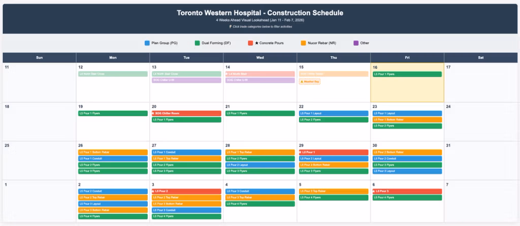- 100% jobsite adoption - Within eight weeks, supervisors, trades, and UHN’s permit team were fully engaged, embedding accountability and alignment across the workforce. Critical path participants: