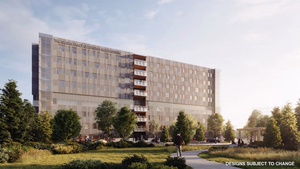 Le projet d’agrandissement de ce qui deviendra le Centre de santé Queensway de la famille Gilgan mènera à la création d’un centre moderne dédié aux soins complexes et aux services de réadaptation, où les patients pourront être soignés et se rétablir dans un environnement construit précisément à cet effet. Le projet comprend la construction d’un bâtiment de neuf étages, le remplacement de la centrale électrique et les importants travaux de rénovation du Centre de santé Queensway existant.