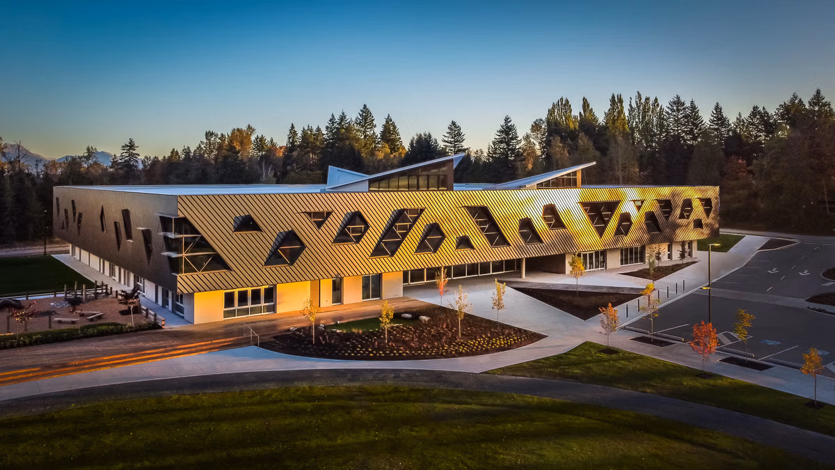 Centre communautaire Clayton de Surrey : le plus grand centre de maisons passives au Canada pour les loisirs, les bibliothèques, les arts et les parcs, réduisant les émissions de carbone de 98 %.