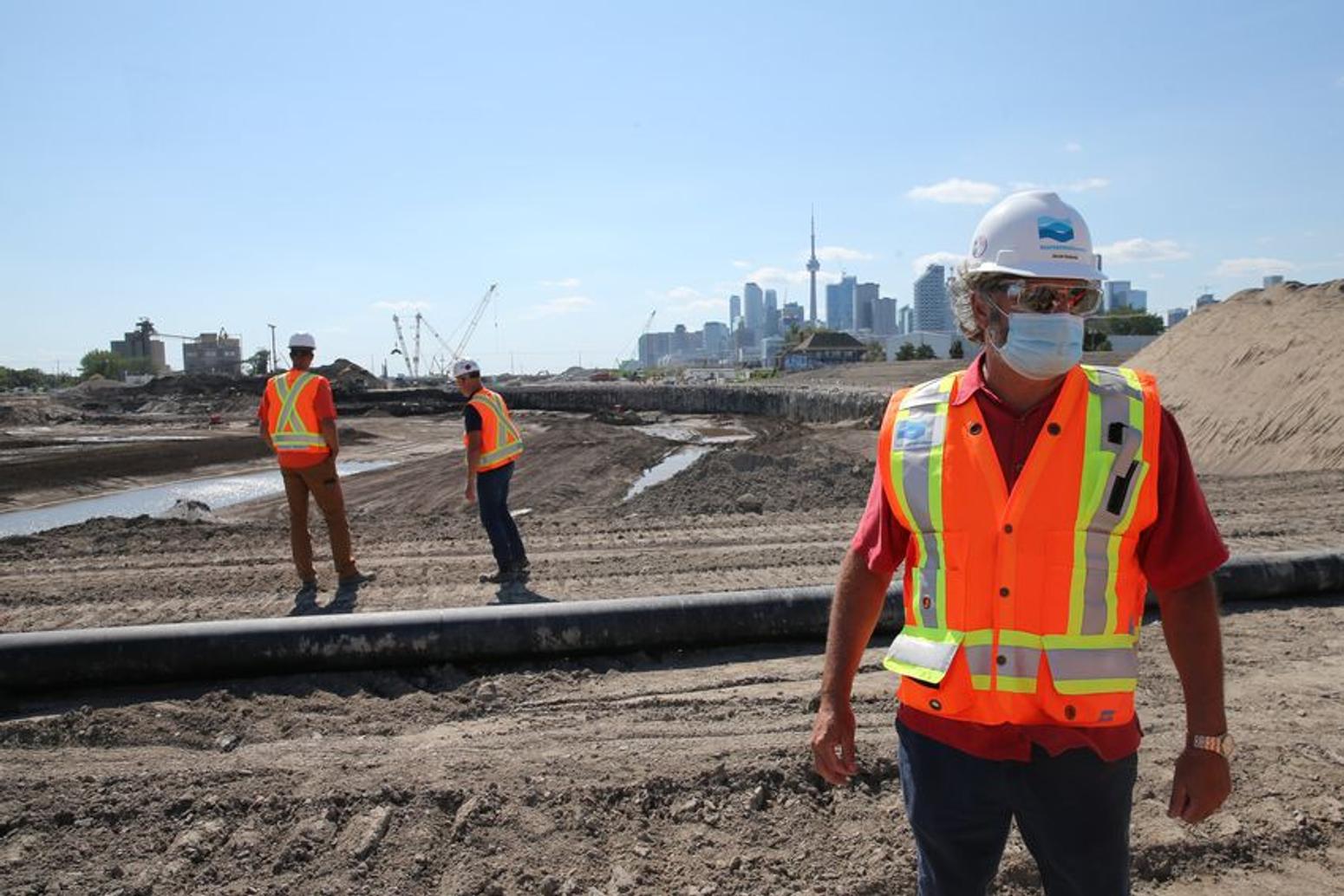 The site stinks. As we walk, the oil smell hits us, a reminder the Port Lands once hosted big fuel tanks to power a booming city. Relief comes from what Kusturin jokingly calls an “industrial Febreze machine” that eats odour and perfumes the air.Most of the dug soil is also being cleaned, some with hydrocarbon-munching bacteria. More heavily polluted dirt will be carefully heated with electric probes to “smoulder” away toxic chemicals.The $1.25-billion project, cost shared by the city, province and Ottawa, is adding environmental resilience to the east waterfront, unlocking potential for new neighbourhoods, including one on what will be called Villiers Island.So far, the government project — designed by U.S. landscape architects Michael Van Valkenburgh Associates, overseen by Waterfront Toronto, built by EllisDon construction — has itself proved resilient, without pandemic delays.Hitches have been small, and sometimes feathered. The facade of the demolished T&T grocery store on Cherry Street has to stay up until some barn swallows, a “threatened” species, finish nesting there. A work-site tent lingers for the same reason.“We’re on time and on budget,” Kusturin says.
