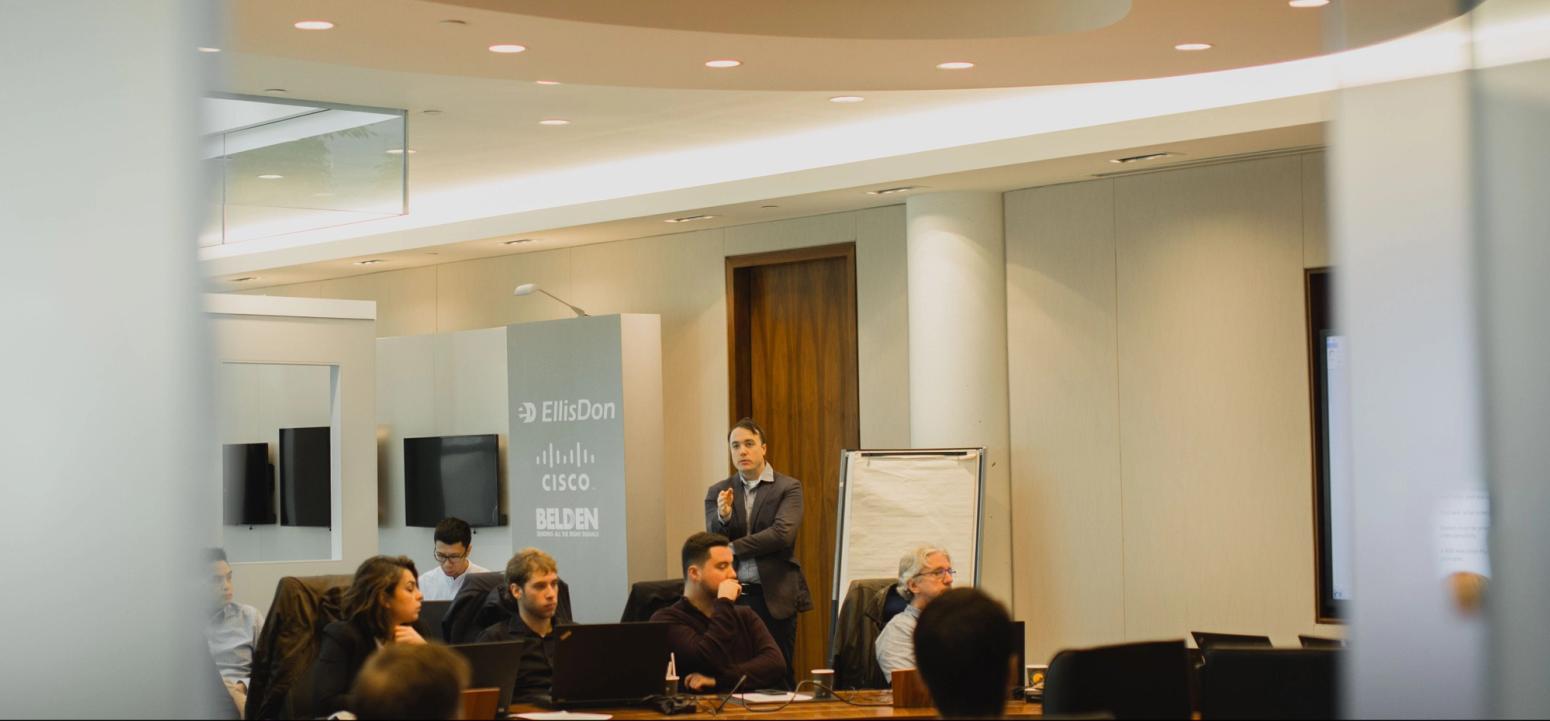 Tom Strong speaks at EllisDon's Virtual Design and Construction Annual General Meeting last year.