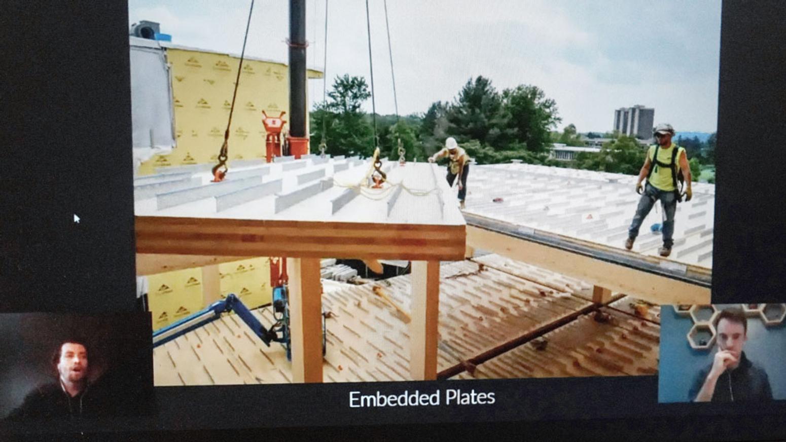 SCREENSHOT — Mark Gaglione and Vincent Davenport of EllisDon’s building sciences group recently discussed myths pertaining to mass timber during a Buildings Week seminar. One such myth is that mass timber projects are mostly comprised of wood. They stated often the best approach is a hybrid of steel, concrete and timber.