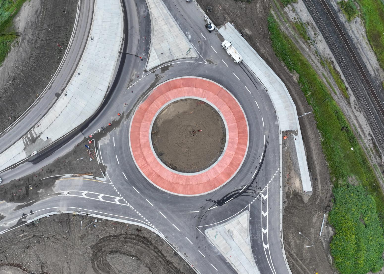 - Construction de la conception partielle en trèfle des bretelles de l’échangeur et des ronds-points pour optimiser la circulation et permettre un prochain agrandissement.