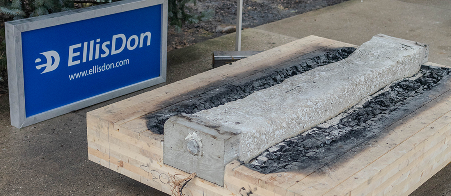 EllisDon and project partner, DIALOG presented their hybrid timber floor system at the Faculty Club in Toronto last week to industry professionals, developers, architects, and engineers. This event was the culmination of over two years of research and development efforts, bringing the system from the back of a napkin sketch to reality! Attendees got an exclusive look at the small-scale fire test panel in person and developed an understanding of the panels and their potential to shake up the mass timber construction industry.