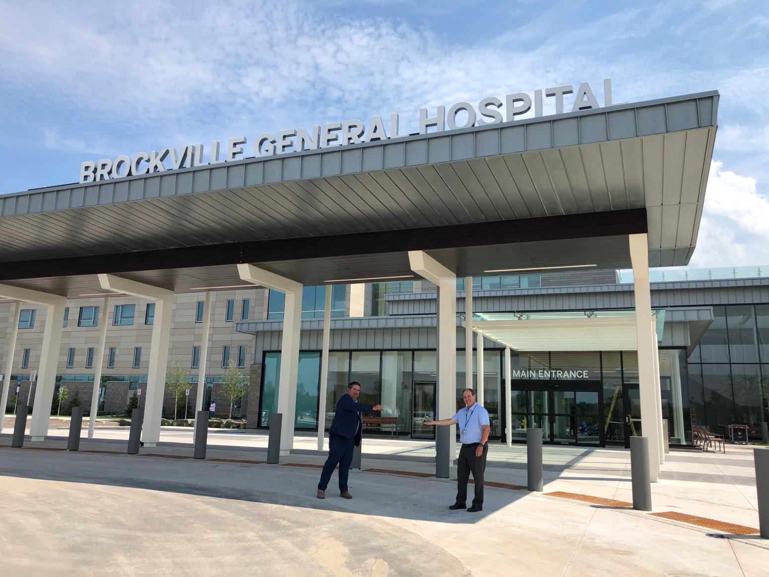Brockville, ON – August 11, 2020 – On August 11, 2020, Nick Vlacholias, President and CEO of Brockville General Hospital (BGH) received the keys to the new patient tower, located at the hospital’s Charles Street site.Mike Armstrong, Construction Manager with EllisDon, who is the lead contractor on BGH’s Phase 2 Redevelopment Project, was on site to deliver the keys.“This is a major milestone,” said Vlacholias. “Thanks to the hard work by EllisDon and our BGH project team, we have reached substantial completion, which means the new tower is ready for occupancy. Thank you to EllisDon for their incredible support and service towards our hospital and community over the past two years.” Some construction will continue to end of September at which time EllisDon will have completed the project.“The next phase is to furnish the new tower with all new equipment and begin the training for our staff and physicians to ensure that we continue to deliver the safe, high-quality care that our community expects of us,” continues Vlacholias.“Over the coming weeks, we will share regular updates on the work taking place to ensure the safe opening of our tower. Thank you to all the members of our staff who are working incredibly hard to enable us to open this fall!” Public access to the new tower will be limited at this time as we prepare for the transfer of our patients, from our Garden Street site and our inpatient Mental Health Program, on October 24.
