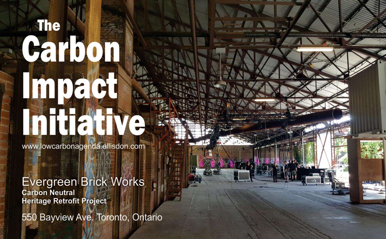 The mandate is to deal with carbon impact during construction and also once the building or infrastructure, transit systems and airports, for example, are fully operational, Bowerbank says.This March work will commence on the conversion of the historic 53,000-square-foot kiln barns at Evergreen Brick Works into an event space that meets carbon neutral targets.The kilns manufactured many of the bricks used on Toronto homes and other buildings erected in the 19th and 20th centuries.One of the first challenges is with the low-lying flood plain at Evergreen. To keep the event space flood-free, the concrete floors will be raised two feet above the existing floor on cupola-like structures, says Bowerbank."It almost looks like an upside down egg carton with individual large plastic cups or cupolas (12 to 14 inches high) that sit on the old floor," he adds.Concrete will be poured into the "nooks and crannies of the cupolas to create a solid floor two feet in height that only needs a fraction of the concrete of a traditional concrete slab pour," he says.The flooring will feature radiant heating tied into a geothermal system.CRH Canada is one of EllisDon's key partners on the CII and is a leader on the innovative concrete design at the kiln barns, explains Bowerbank.Another issue at the project is how to ventilate the 53,000 square foot building without high energy consumption. The goal is to extend the building's usage. Currently, it is used only a month or two a year, but the new design will enclose it enough for use over three seasons, says Bowerbank.The roof will be well insulated and feature an array of solar panels expected to produce enough energy to eventually be integrated over the complex of buildings at Evergreen Brick Works.The objective, says Bowerbank, is to hit a net zero energy target.