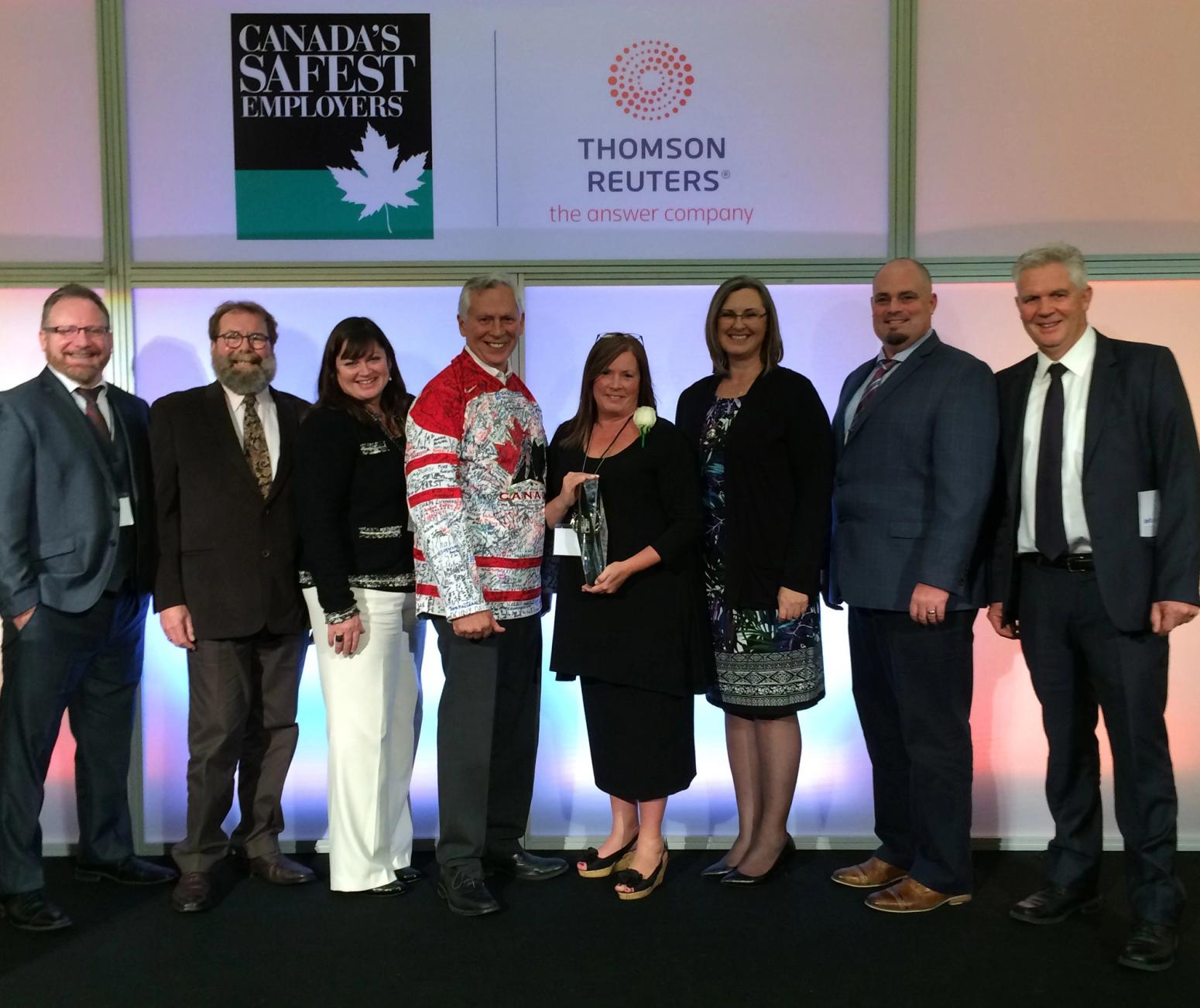 Mississauga, October 26, 2016 — This past Monday, EllisDon was presented with Canada’s Safest Employer Award at the Safest Employer Gala at Arcadian Court in Toronto.The Safest Employer Award is presented by Canadian Occupational Safety in partnership with Workplace Safety and Prevention Services and encompasses 10 industry-specific categories. EllisDon was the Gold recipient in the Building and Construction category. The gala brings together the entire safety community and provides an opportunity to network and discover best practices that are changing workplaces across Canada and fostering a culture of safety.“It is an honour to have our Health and Safety execution and expertise recognized through this prestigious award. Safety is woven into every aspect of our business,” said Kari Harris, VP, Occupational Health & Safety.Launched in 2011, Canada’s Safest Employer Award recognizes companies across Canada for their outstanding accomplishments in promoting health and safety for their workers. The award boasts 10- industry specific categories and companies are judged based on a wide range of health and safety elements, including employee training, OHS management systems, incident investigation, emergency preparedness, and innovated health and safety initiatives. EllisDon actively participates in several industry based safety committees providing staff, subcontractors, and owners, with the resources to achieve maximum performance. Maintaining standards that exceed government and industry requirements, EllisDon has held an unsurpassed safety record earning a number of recognitions and awards.