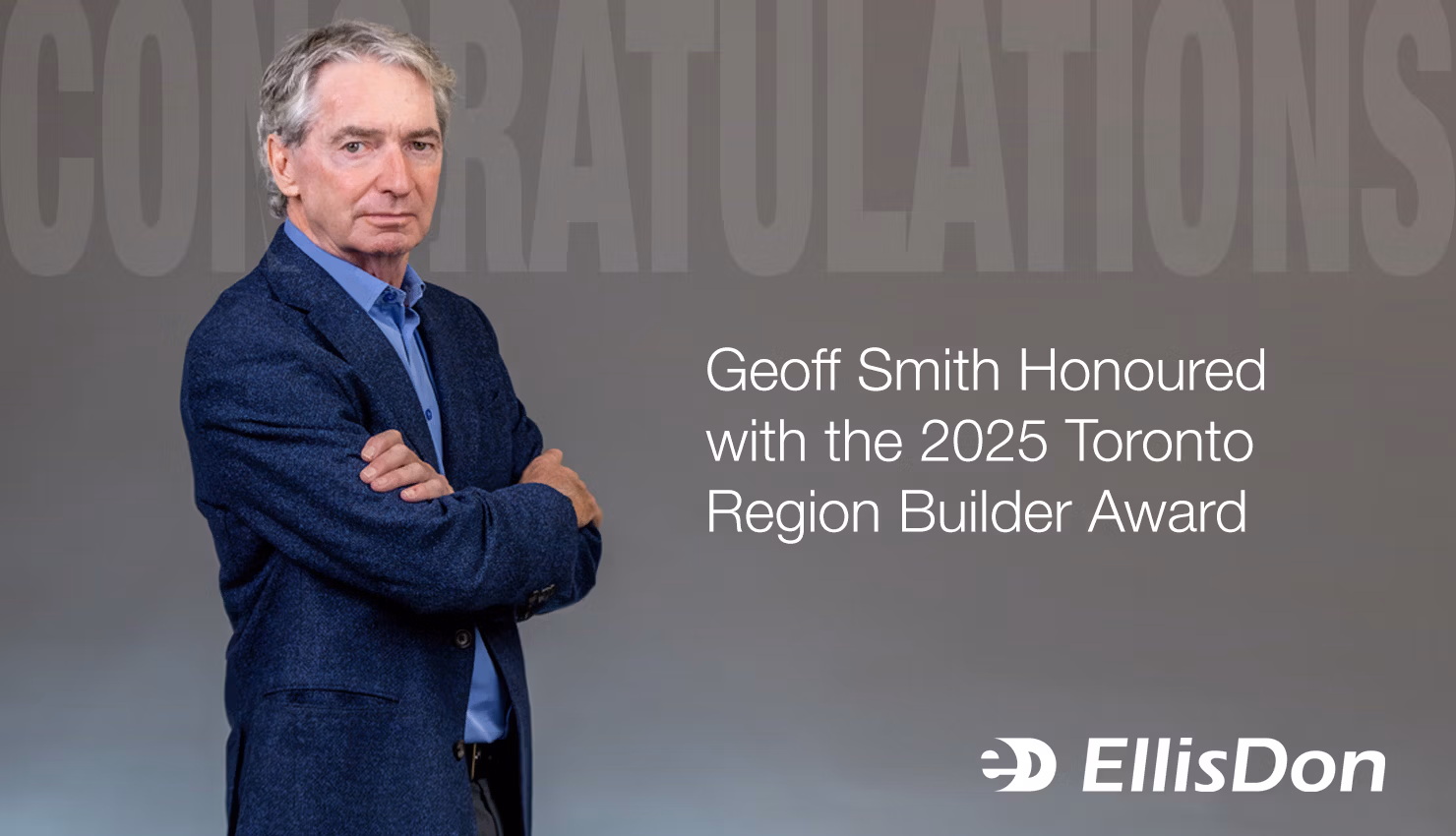 MISSISSAUGA, ON, January 10, 2025 — EllisDon Corporation announces that Executive Chair of the Board of Directors, Geoff Smith, has been named the recipient of the prestigious 2025 Toronto Region Builder Award. This accolade celebrates Geoff’s lifelong dedication to EllisDon, its employees, and the construction services industry, as well as his broader contributions to the Toronto region through exemplary leadership and community impact.