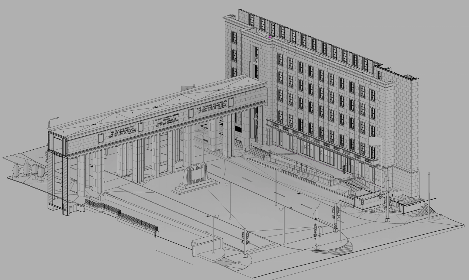 Memorial Colonnade in Ottawa, Ontario, connecting two heritage buildings, has stood as a monument honouring Canadians who served their country during the Second World War since its completion in 1958. The buildings themselves have sat empty since 2008 and are in need of upgrades and retrofitting, much like Memorial Colonnade itself.