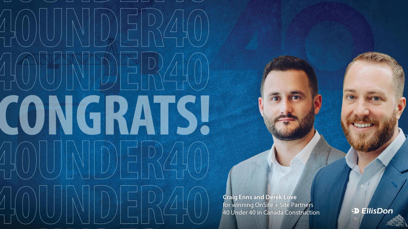 Mississauga, ON, December 10, 2021 — EllisDon’s Craig Enns, Vice President and Area Manager, British Columbia and Derek Love, Vice President and Area Manager, Looby Construction, were named in Onsite + Site Partners 40 Under 40 in Canadian Construction list.