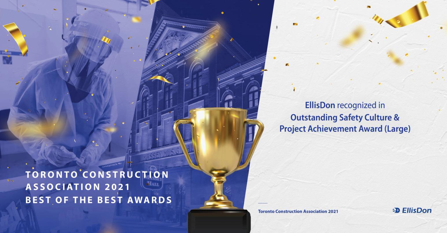 EllisDon has won two of the Toronto Construction Association’s (TCA) 2021 “Best of the Best” awards. The first in the Project Achievement Award (Large) category for the Massey Hall Major Revitalization project and the second for Outstanding Safety Culture.