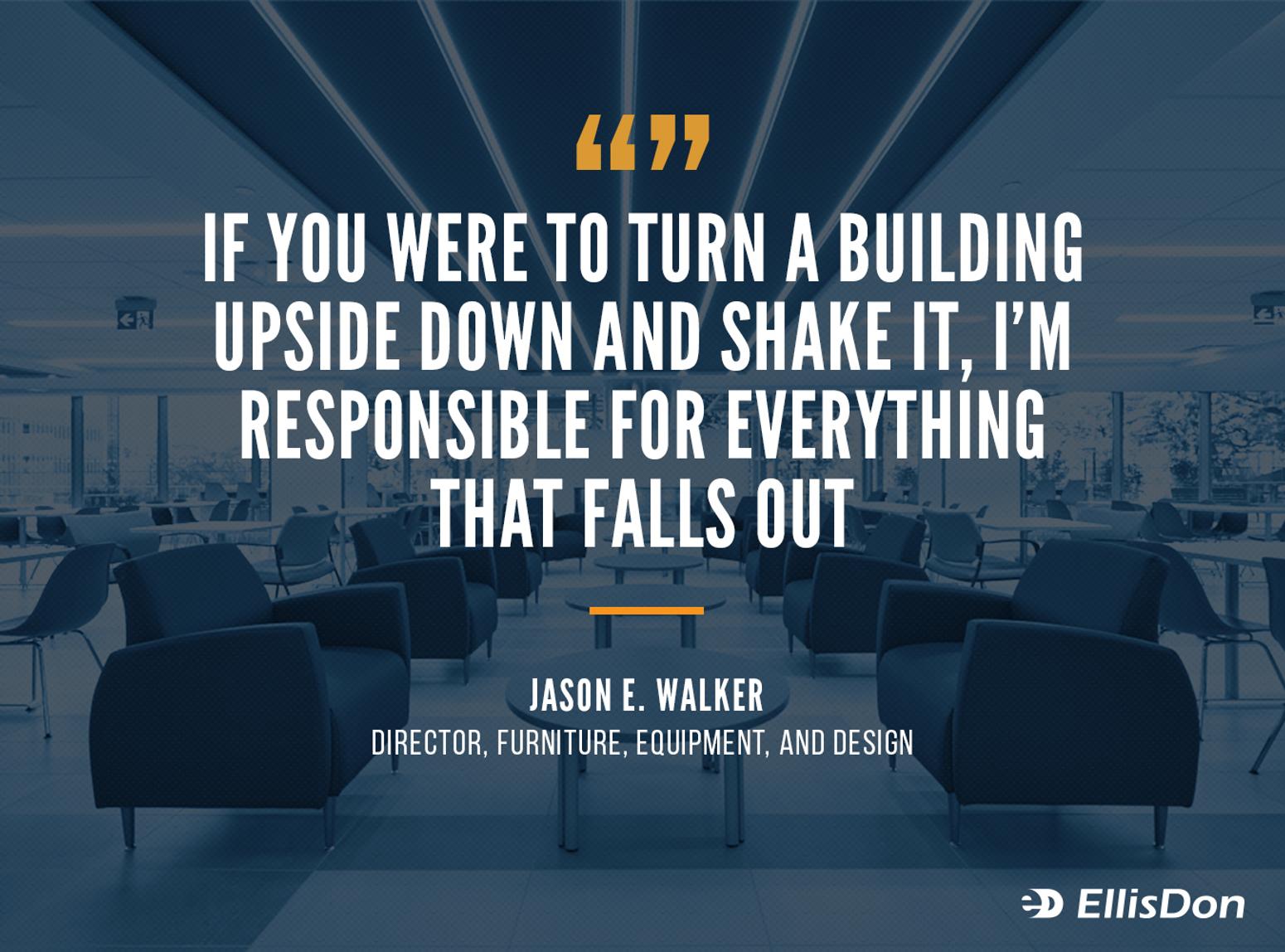 “Next to construction, furniture, fixtures and equipment is the second-biggest cost on a project. I said, EllisDon should manage this whole process and take this risk from the client. EllisDon would save money, the project would be executed better and the client would be happier.” It worked. Today, Jason is a director at EllisDon and oversees its Furniture, Equipment, and Design division, otherwise known as “FED”.Recently, he came back to Queen’s to work on the construction of Mitchell Hall. Opened earlier this year, the three-storey building on the former site of the Physical Education Centre is home to expanded engineering and research facilities and a wide spectrum of student wellness services. Jason was involved in every detail of filling it with the required furniture and equipment.“Before I got my MBA, I had a lot of ideas but I didn’t know how to bring them all together,” Jason says. “And I wanted to challenge myself. That’s where my idea of getting my own division at EllisDon started.”