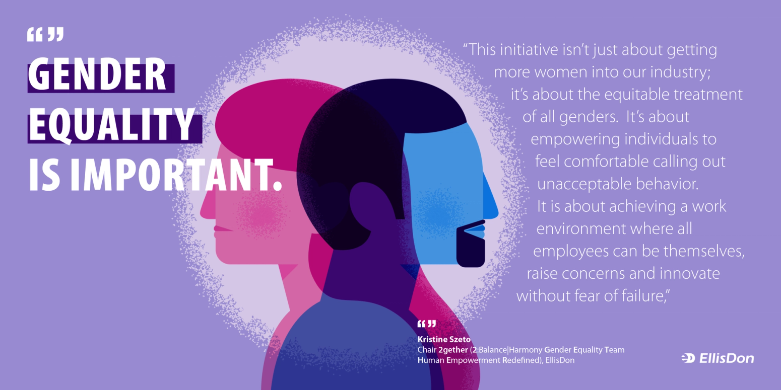 For me, gender equality is simple: it is a world where men and women are treated equally. My name is Kristine Szeto. I’m the Director of M&E Preconstruction for the British Columbia Area and I’m honoured to introduce myself as the Chair of 2gether (2: Balance Harmony Gender Equality Team Human Empowerment Redefined). My goal is to form a group reflective of all forms of gender expression, that will discuss gender equality at EllisDon, identify areas for improvement, and set in motion plans to achieve equal outcomes regardless of gender.I also want to introduce the group’s executive sponsor Tom Howell, Senior Vice President, ED Modular. He will be providing support and leadership at the executive level. In our early conversations about the formation of this group, he clearly expressed why gender equality is so important to him, both from a personal and professional standpoint. I want to thank him in advance for his support and commitment to gender equality.
