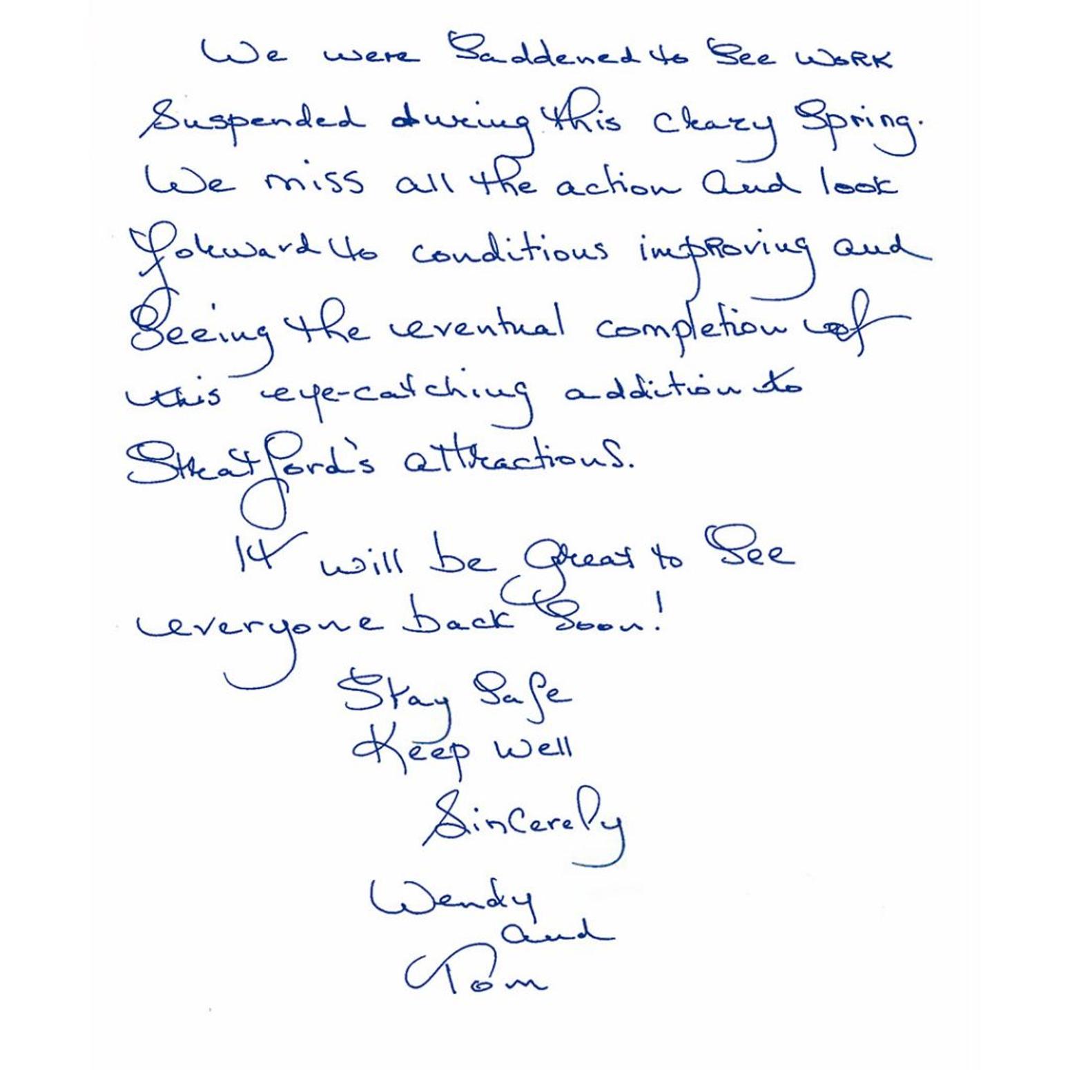 Handwritten letter from project neighbours in our local community