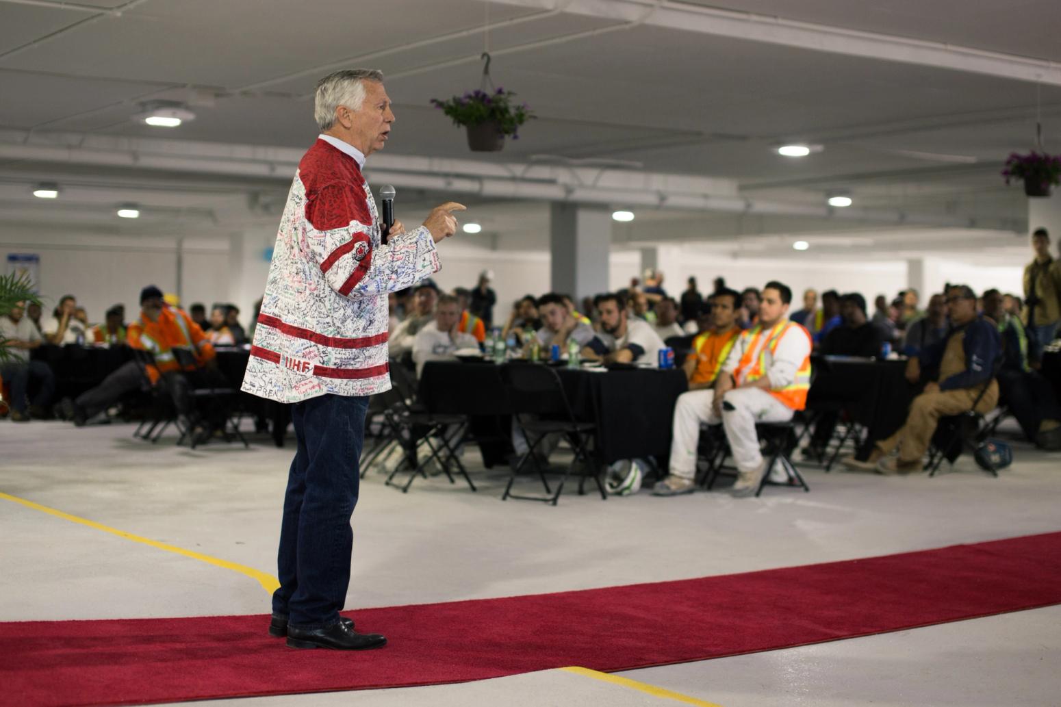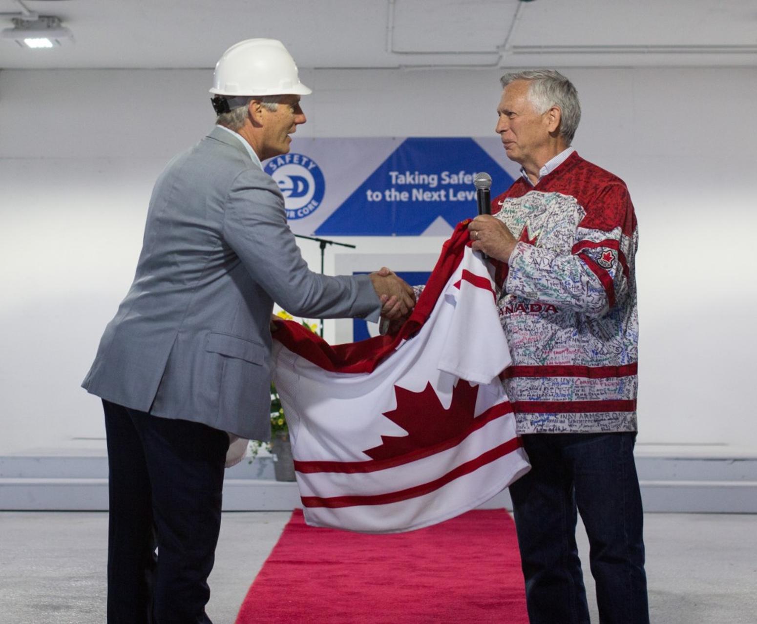 EllisDon and MySafeWork, a non-profit organization championing workplace safety, made Yorkdale the second stop on its Jersey of Courage tour to urge employers and employees to create safer workplaces.“We can and must commit ourselves to a new, higher standard of safety – not only EllisDon employees, but every single person on our jobsites,” said Geoff Smith, EllisDon President and CEO, in a statement. “Safety is more important than making money, more important than making schedule, more important than client service, it is more important than absolutely anything.”The charity event raised $1050 for Threads of Life, an organization that supports families who've been affected by a workplace tragedy.To learn more about Ellis' story visit MySafeWork.
