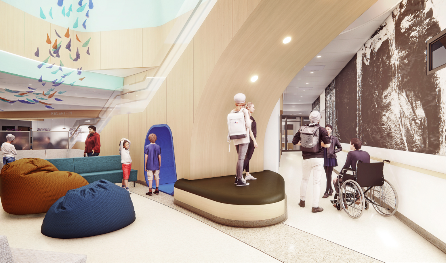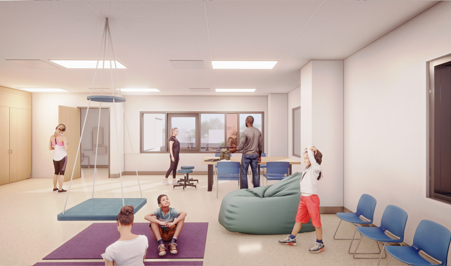 Le CTI du CHEO devrait comporter de nouvelles cliniques en santé mentale, des espaces intérieurs et extérieurs éducatifs et thérapeutiques, des aires spécialisées pour les enfants et les jeunes qui ont des besoins émotionnels complexes, des salles de traitement, des technologies de soins virtuels, ainsi que des espaces de soutien familial et communautaire. Le bâtiment a été conçu pour être accessible, avec une attention particulière à la création d’espaces adaptés aux personnes atteintes d’obésité et avec des stratégies de signalisation réfléchies qui améliorent davantage l’expérience des patients et patientes, éliminant un autre obstacle à leurs soins.