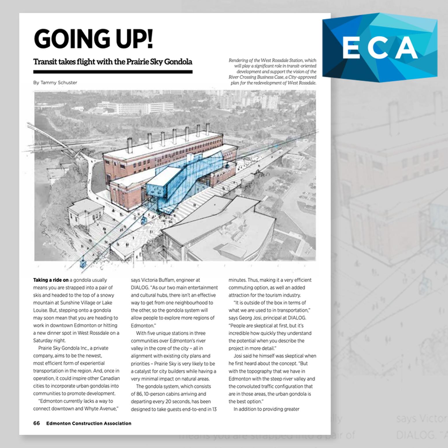 The Edmonton Construction Association has published its Winter Issue of Breaking Ground, featuring our Prairie Sky Gondola project.The Prairie Sky Gondola aims to be the newest and most efficient form of experimental transportation in the Edmonton region. Encompassing five unique stations in three communities over Edmonton’s river valley in the core of the city, the Prairie Sky is very like to be a catalyst for city builders while having a minimal impact in natural areas.