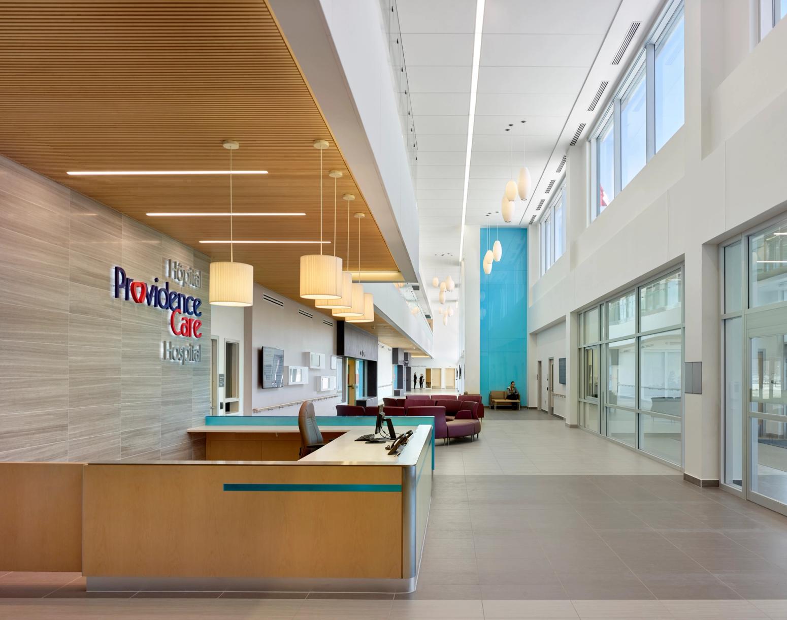 The project achieved Substantial Completion in December 2016. In May 2019, Methologica Inc., in collaboration with the hospital and the Ministry of Health and Long Term Care, published “Harmonizing Health Services by Design at Providence Care Hospital: User Experience and Design Evaluation Before and After the Redevelopment”, a Post-Occupancy Evaluation report on the project. This report contributes to the body of evidence-based design literature. The defined key design objectives of the project were to promote recovery and transition; foster connection and connectivity with people and their surroundings; create a healing environment; enhance the staff-patient experience; encourage comingling of staff, patients, visitors, and community; and reduce stigma.
