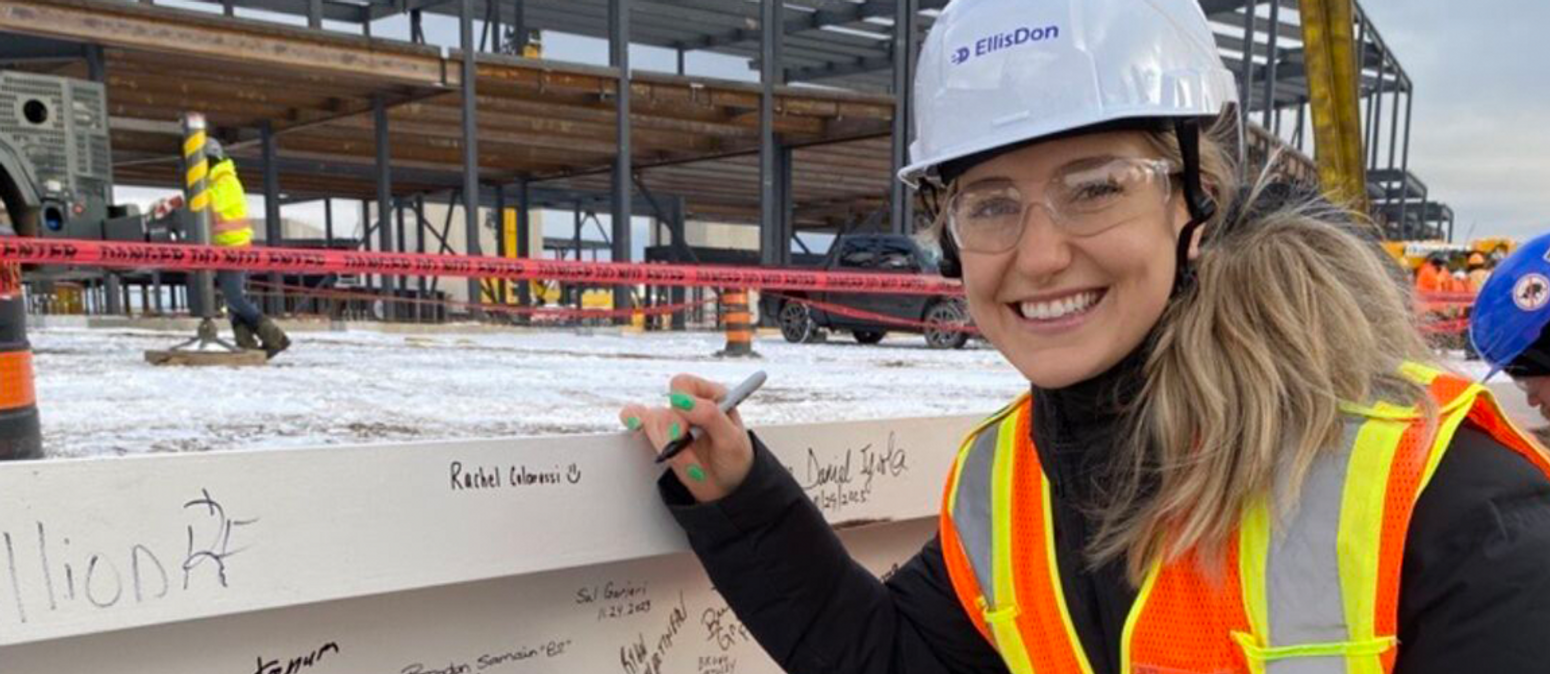EllisDon celebrated the "topping off" of the Thunder Bay Correctional Complex (TBCC) as the final beam was hoisted into place. Project team members were invited to include their signature on the structural beam, as a way to mark the completion of the building's framework and recognize their efforts for reaching the highest point of construction.