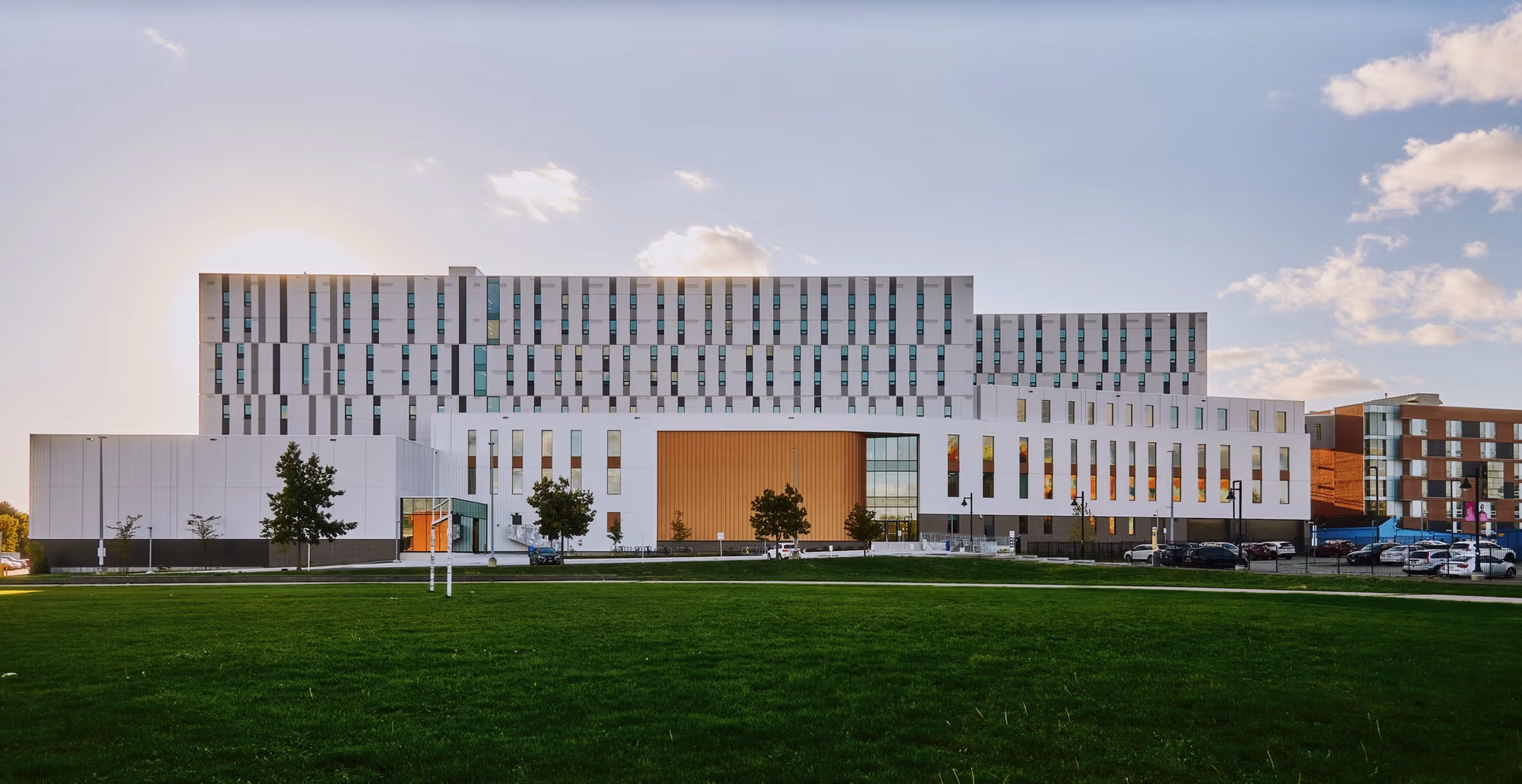 A bold new landmark for arts and innovation, the Humber College Cultural Hub transforms the Lakeshore campus into a vibrant centre for creative education and community engagement. Encompassing 350,000 square feet, the facility houses Humber’s renowned music, creative arts, and multimedia programs alongside the Centre for Creative Business Innovation. With a 600-seat performance hall, 150-seat recital hall, recording studios, film and television production spaces, and technology-rich classrooms, the Hub nurtures the next generation of talent in Canada’s creative industries. It also includes a new 300-bed student residence, expanding access to education while enriching the cultural and economic fabric of the surrounding community.