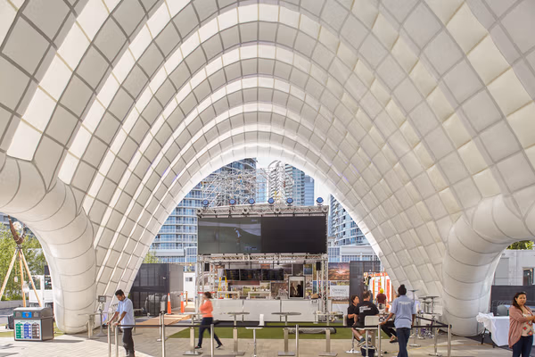 A centerpiece of the Toronto 2015 Pan and Parapan Am Games, the Ontario Celebration Zone at Harbourfront Centre showcased the province’s diversity, culture, and heritage with unparalleled energy. The temporary hub featured two awe-inspiring arched pavilions that housed interactive exhibits, digital media, and culinary experiences. The site also included three outdoor stages, a restaurant, art installations, and thrilling attractions like Ontario’s first accessible zipline, a climbing wall, and the Adrenaline Jump.