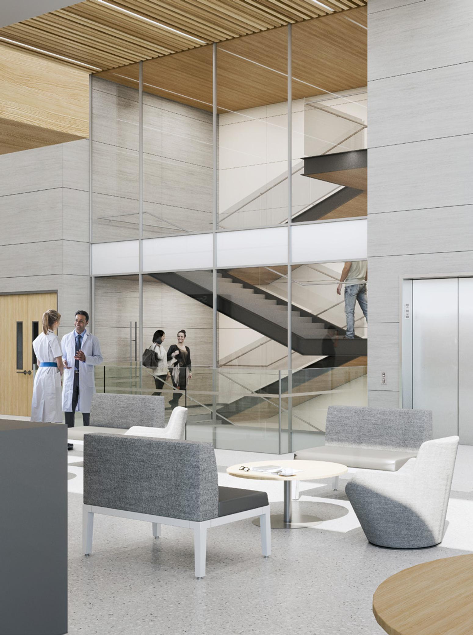 The Bayers Lake Community Outpatient Centre is designed as a place of healing, incorporating environmentally responsible systems and technologies and aims to achieve a Gold level of certification under the LEED v4.0/v4.1 BD+C Healthcare rating system.