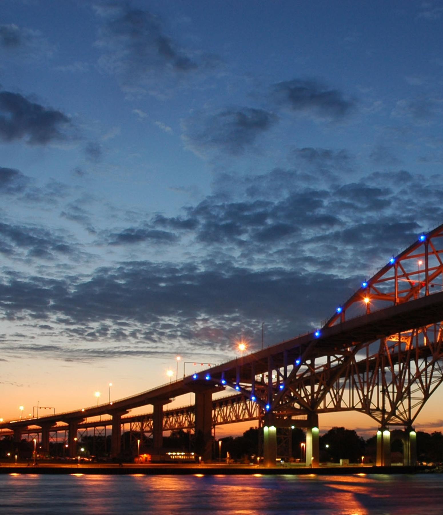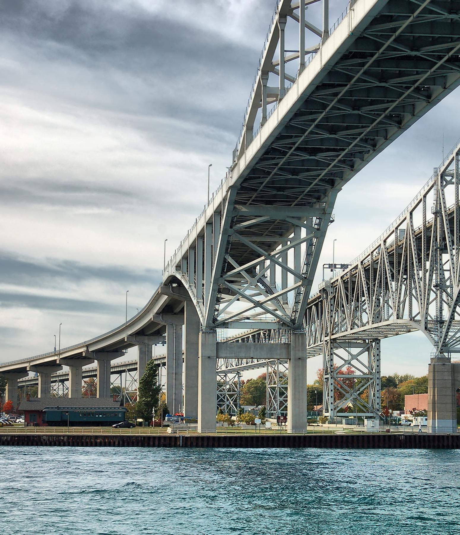 The two-kilometer long Blue Water Bridge is a major Canada-U.S. border crossing connecting Port Huron, Michigan and Sarnia, Ontario. The level of traffic over the bridge necessitated construction of a second bridge to effectively double capacity. EllisDon’s first contract was for the construction of the approach span on the Ontario side of the border and took place simultaneously with the construction of the Main Span and the Michigan Approach Span.