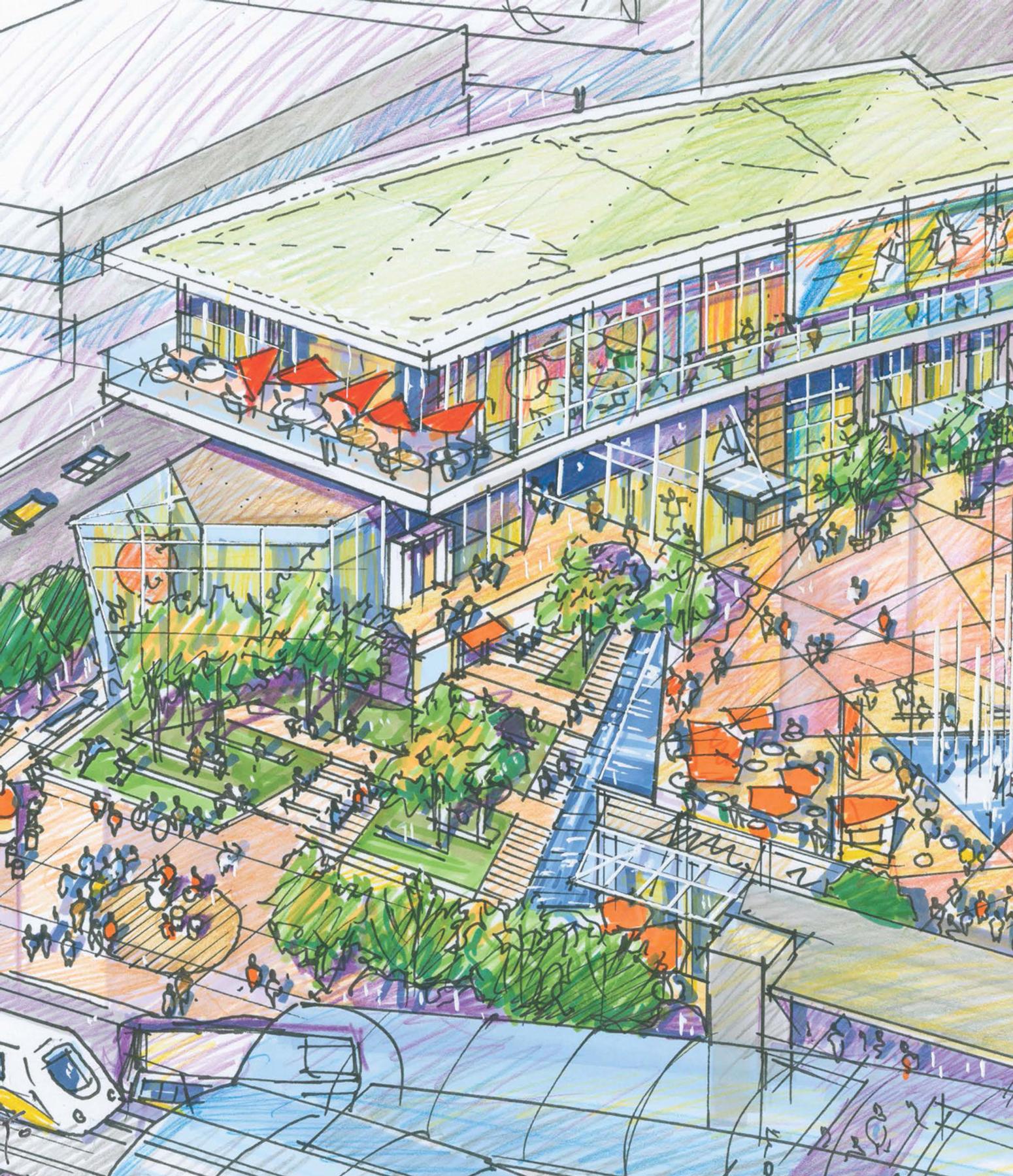 Brentwood Town Centre is a mixed-use, transit-oriented redevelopment built upon the existing 500,000 sq. ft. mall in North Burnaby, BC. With over 600,000 sq. ft of new commercial and retail spaces, “The Amazing Brentwood” showcases an extensive mall expansion and space for premium retail shops accompanied by world-class amenities ranging from restaurants to entertainment and unique public spaces. The project included six levels of underground parking with a service and loading bay level. Above this, there is a podium consisting of three levels of retail and outdoor living space, including a plaza connection to the Brentwood Town Centre Skytrain Station Platform. In addition to this work, two stages of relocation of site services were completed—this allowed the mall to remain fully operational during construction.500,000 SF Brentwood Mall.