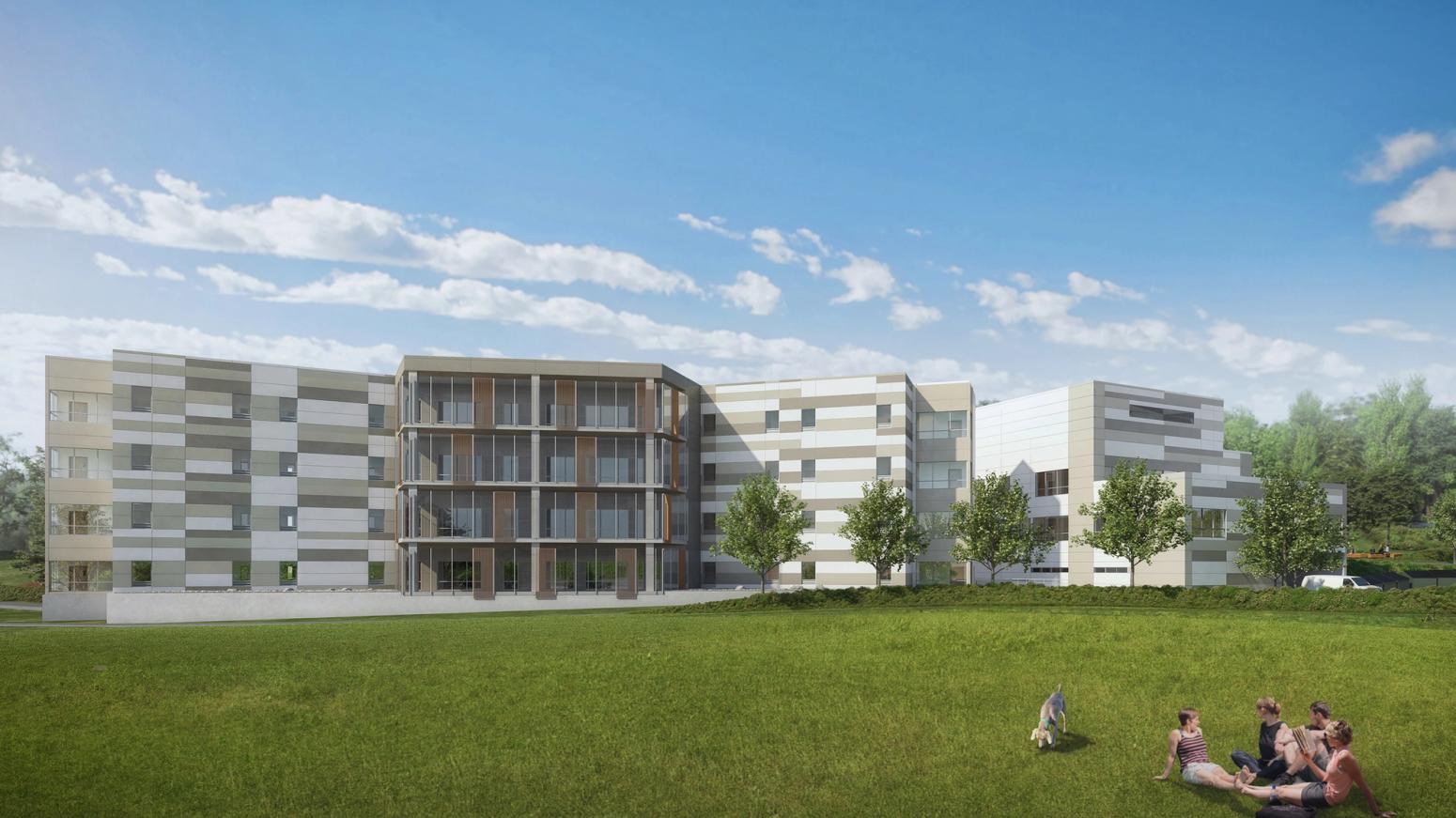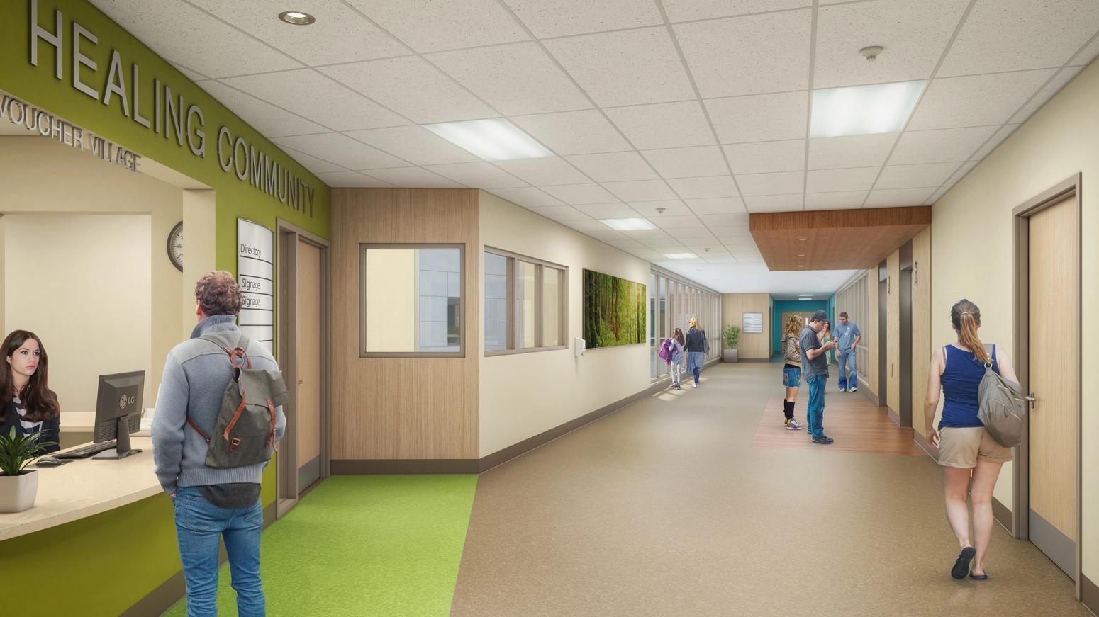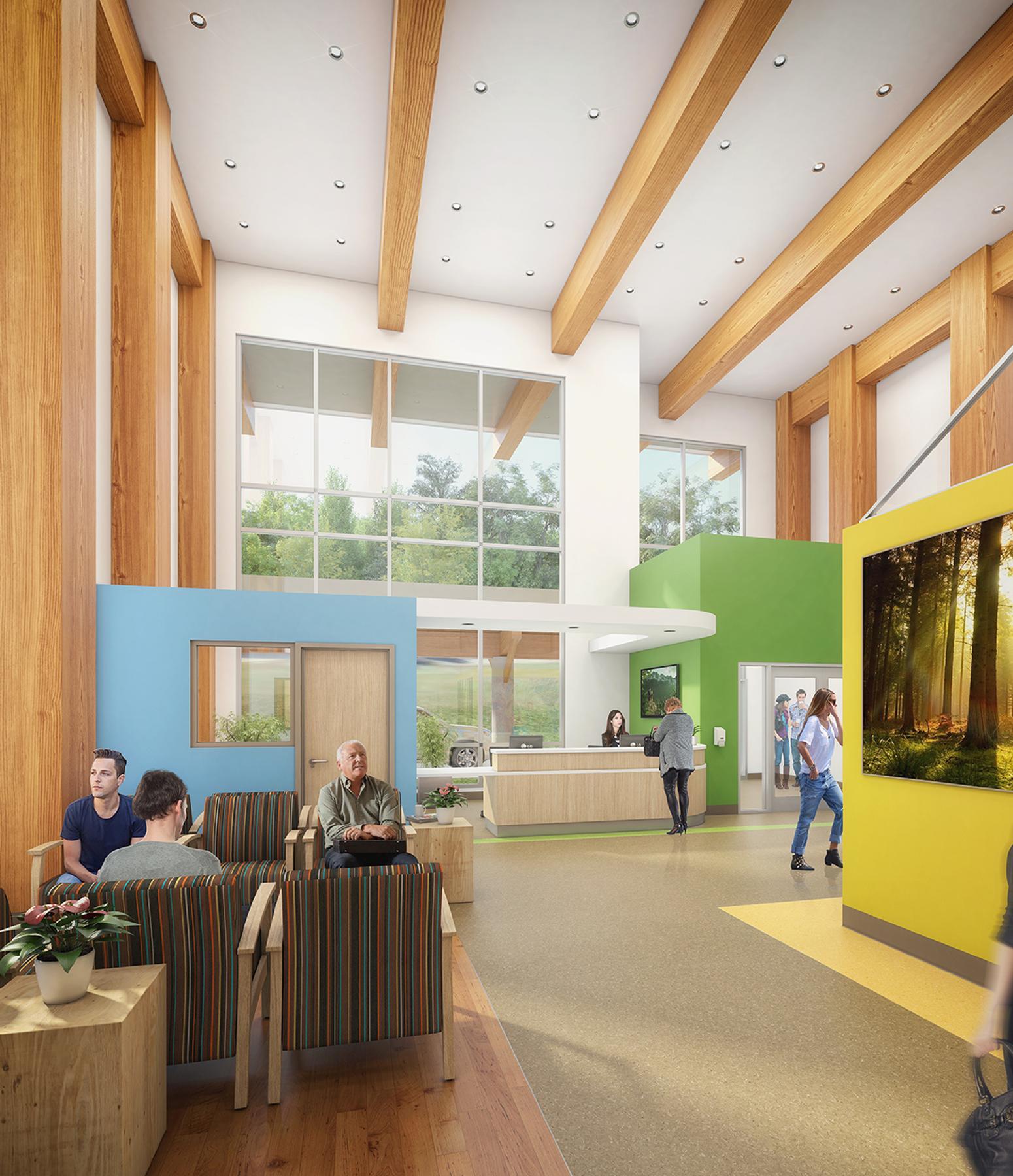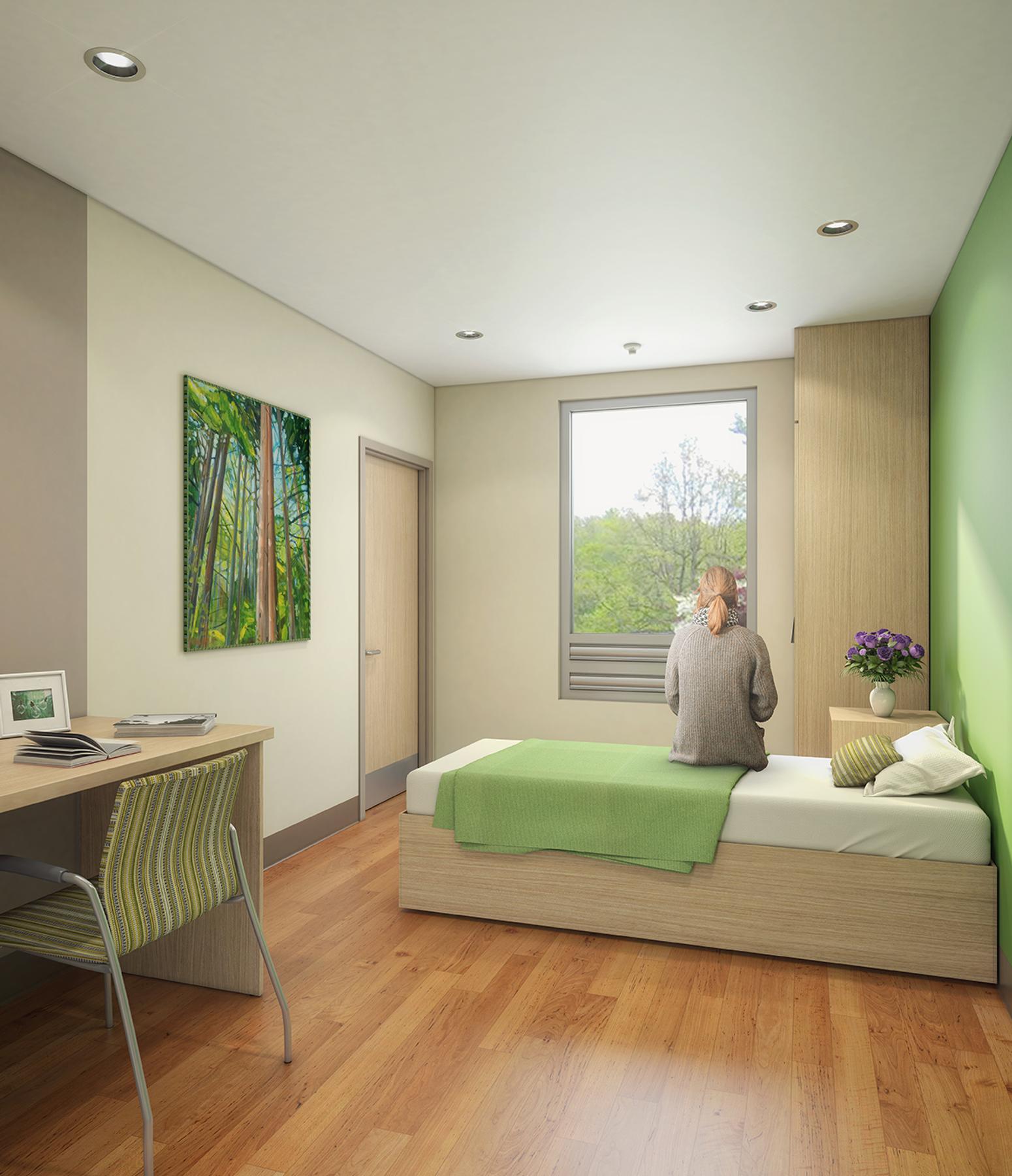 The 3-storey, 105 bed facility will set a new stanadard in healthy community design by incorporating natural light and views of the Riverview Lands and surrounding area among many other therapeutic treatment elements. The Centre for Mental Health and Addition is located on the 244 acres of Riverview Lands; home to approximately 1,800 mature trees. Accommodating the high priority trees on the site defined the final design of the facility.