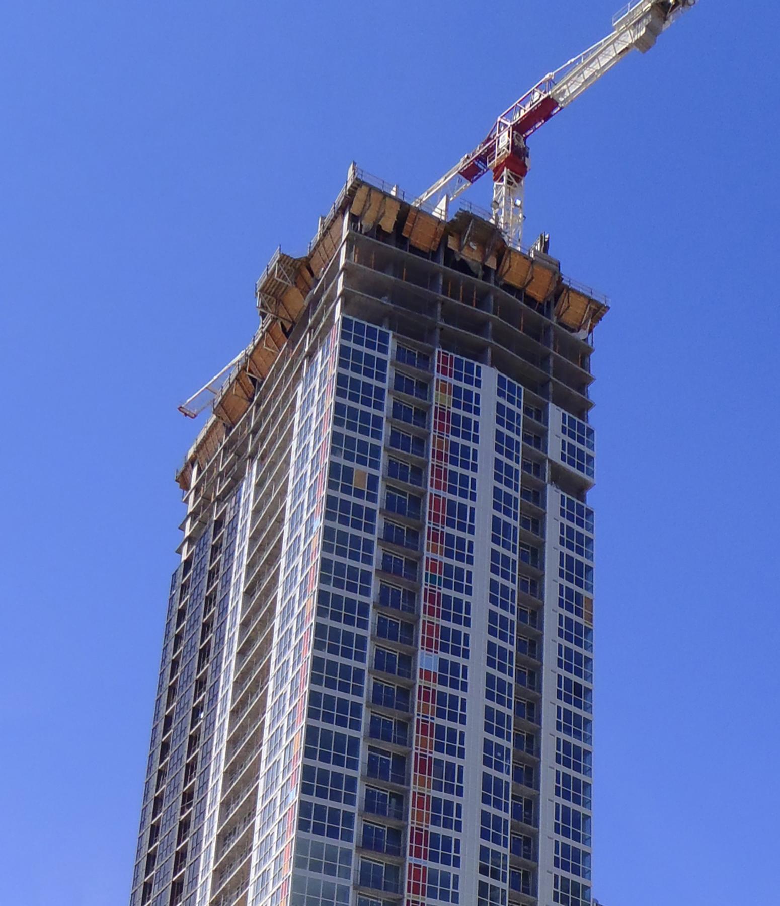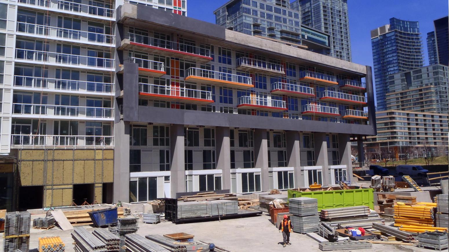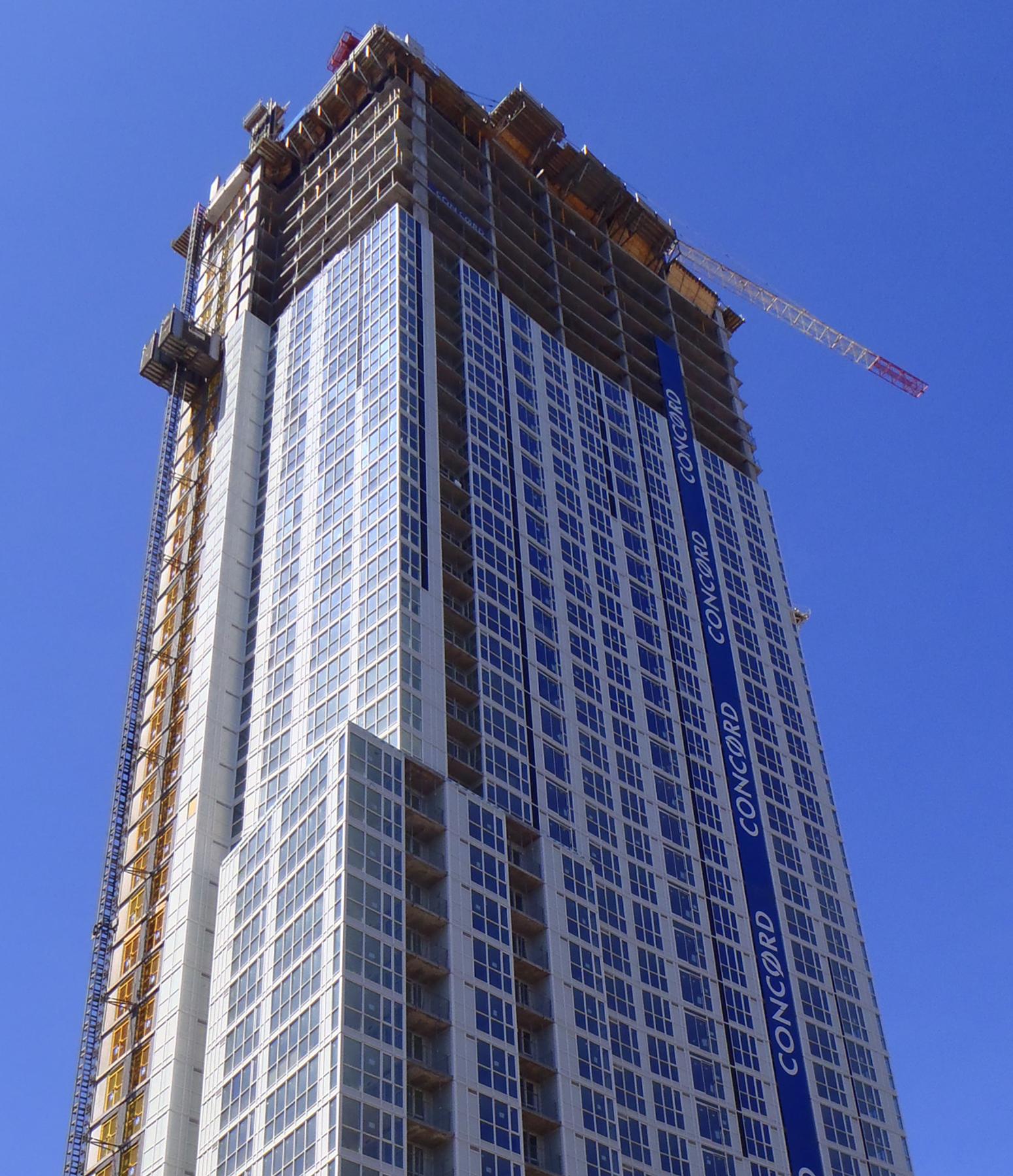 Concord Cityplace is the third condominium complex EllisDon has constructed for Concord Adex Investments Ltd. in recent years. Cityplace consists of two residential towers totalling approximately 690,000 square feet. Tower one has 41 floors and tower two has 40 floors. Together they contain 943 units. The project also includes a six level common and amenity building. The amenities include private access to rooftop terraces with a lounge, outdoor dining and barbeque areas, an indoor pool, an outdoor hot tub and a poolside lounge. It also includes meeting rooms, a screening room, a billiard and card room, a massage lounge, a yoga studio, a cardio and weight room, a combination double badminton court and a halfcourt basketball gym. The complex has three and a half levels of underground parking, which will hold 616 vehicles and 717 bicycles