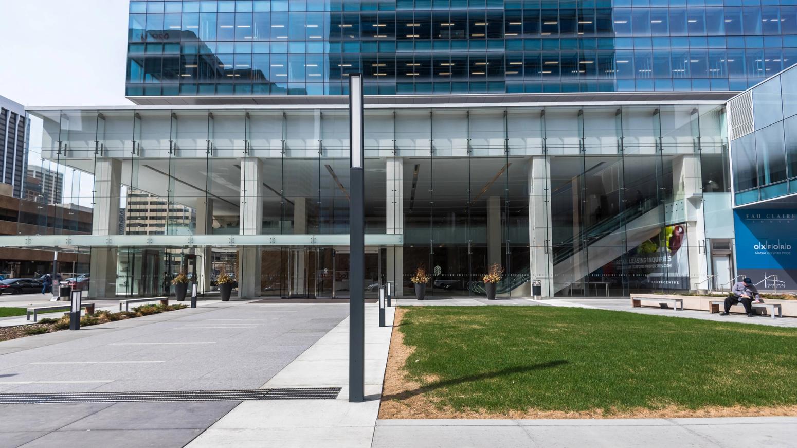 Eau Claire Tower is a 25-storey office tower developed by Oxford Properties Group and is set in the prestigious Eau Claire district of downtown Calgary, bounded by 3rd Avenue S.W. to the south, 2nd Avenue S.W. to the north, 5th Street S.W. to the east and Shaw Court to the west. The tower construction includes a bridge to Calgary’s Plus 15 network for rapid, year-round access to dozens of office and retail buildings. The Eau Claire Tower is targeted to be a LEED® Gold certified development, ensuring sustainability through excellence in design. The typical office floor-plate size is approximately 27,000 square feet. The building will be connected to the existing Centennial Place Development, encompass a raised covered walkway, and feature three levels of underground parking that has 330 parking spots. The building’s concrete structure will be clad with a double glazed curtain wall; will feature a two level lobby enclosed with structural glass; and it will be finished with granite, marble and decorative millwork. It features a new cooling method, Chilled Beams, to cool the perimeters around each office floor.