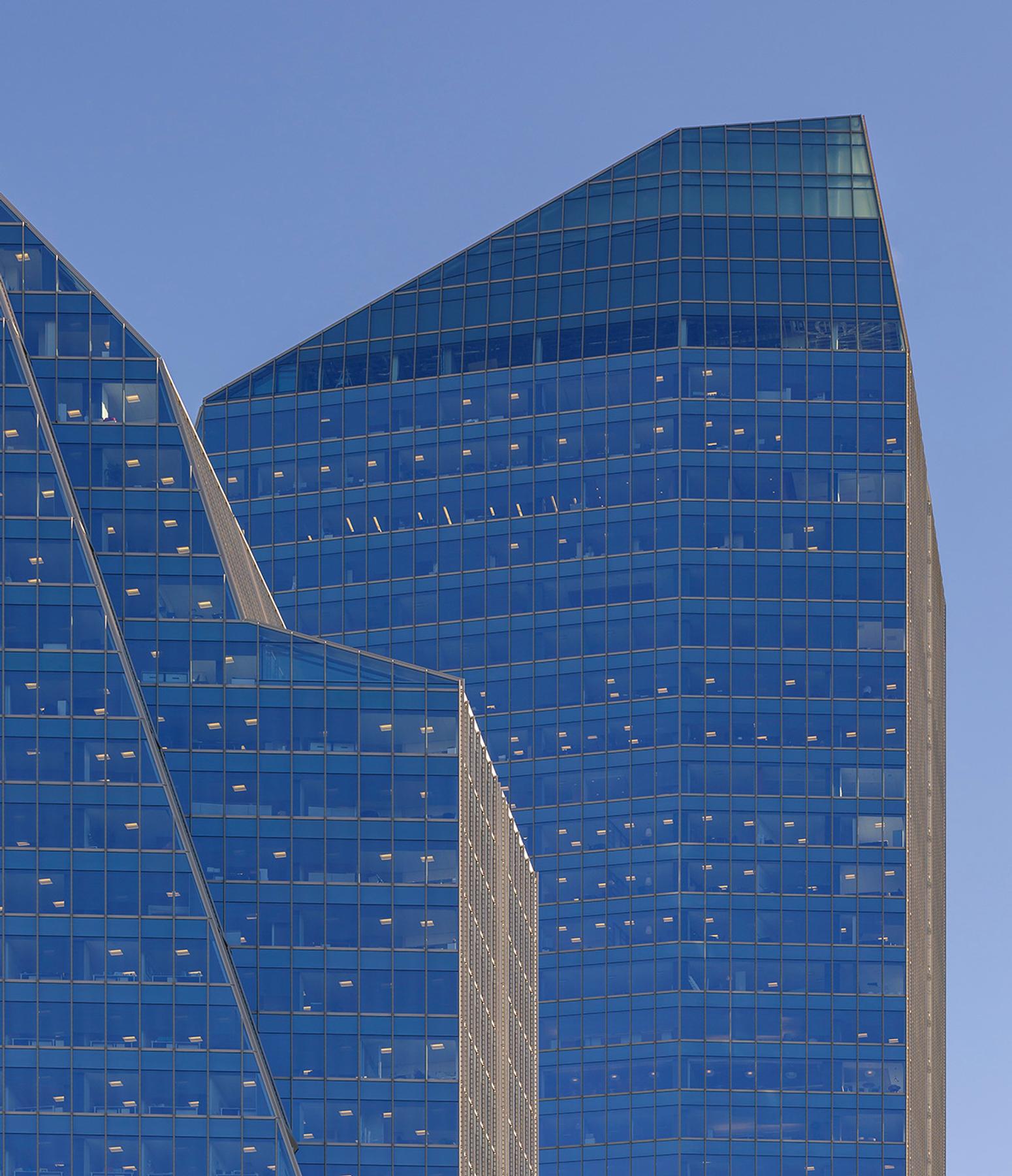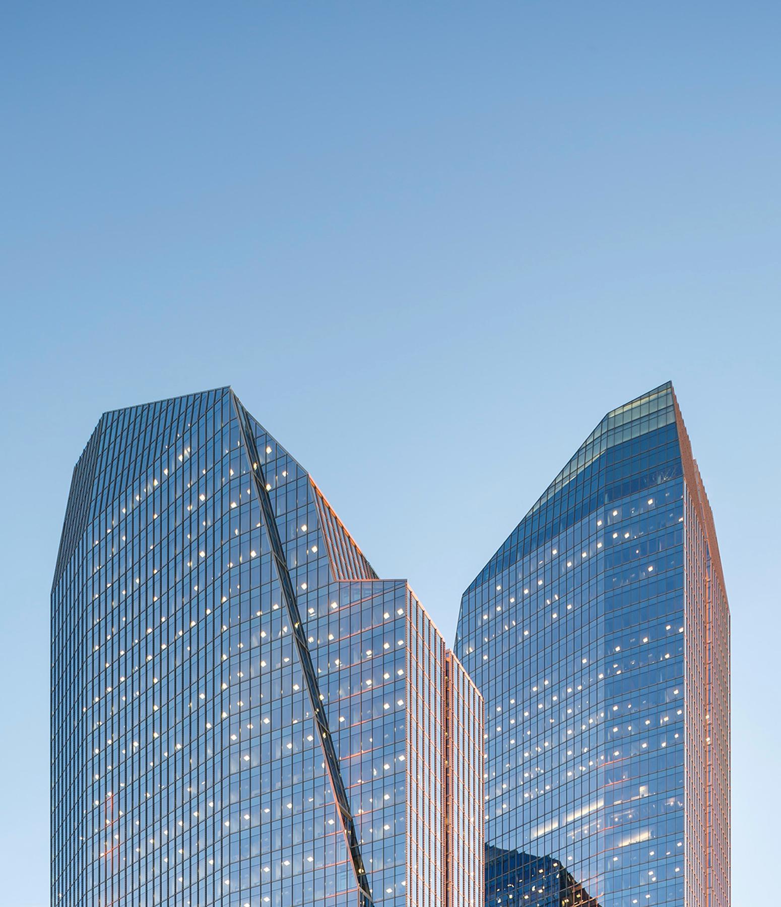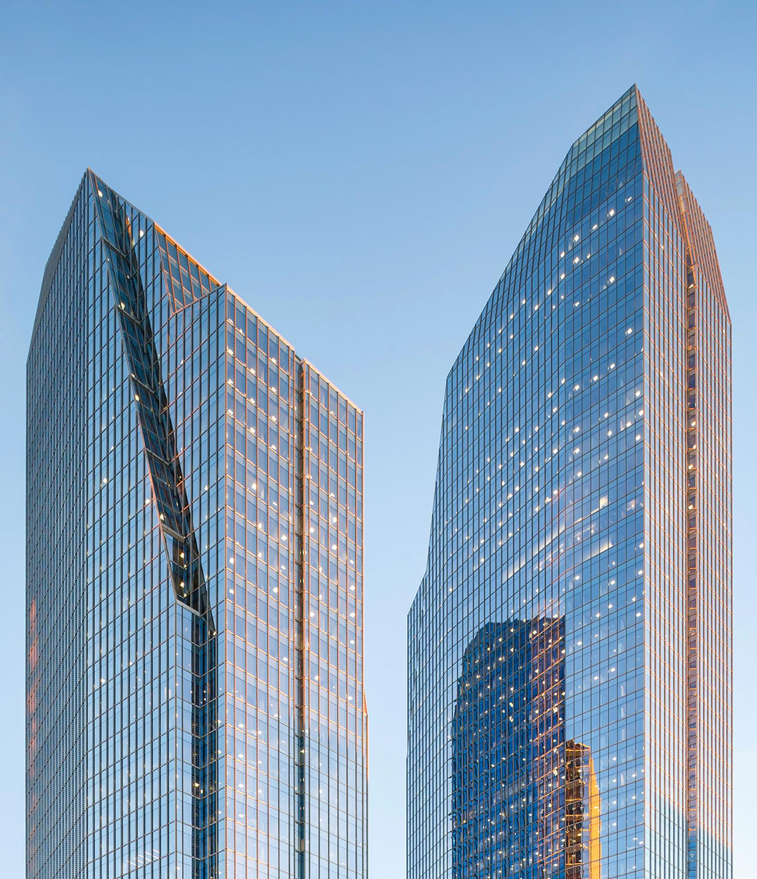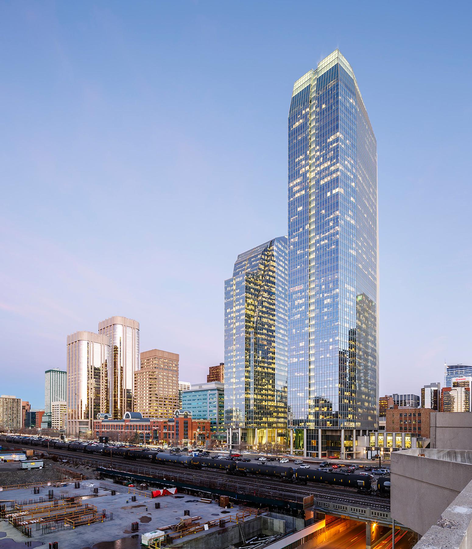 The west tower is a new 40-storey 850,000 square foot tower in downtown Calgary. A new three-storey lobby will connects the new tower to the existing east tower and winter garden. The new tower is situated diagonally across from the existing tower on the site, and will be sloped in the opposite direction from the existing tower, maximizing tower views for occupants of both towers.