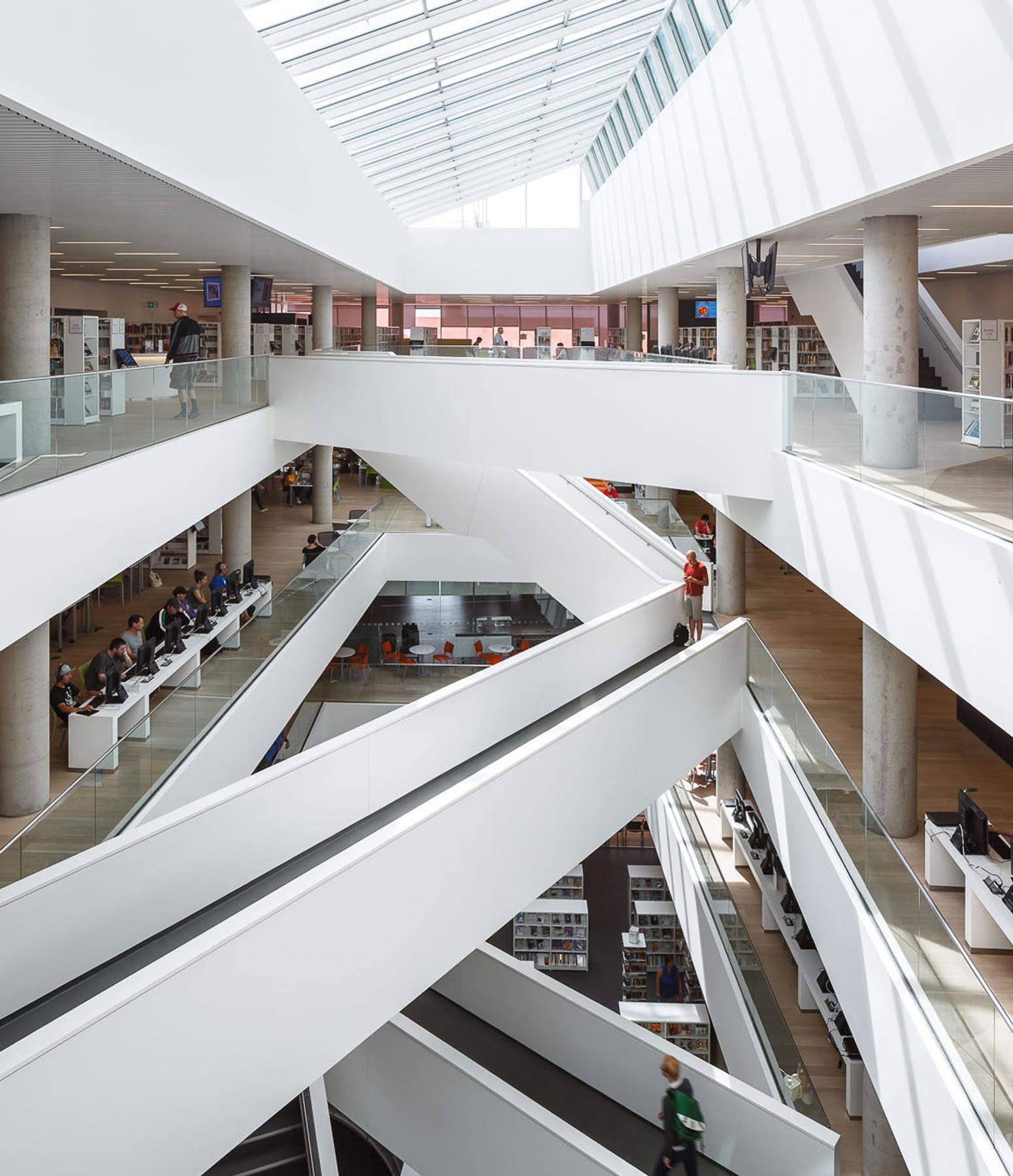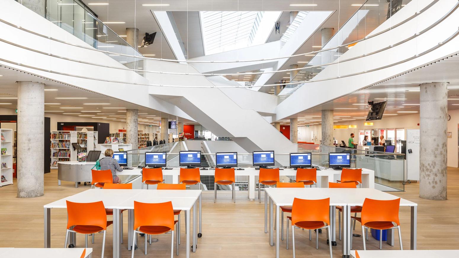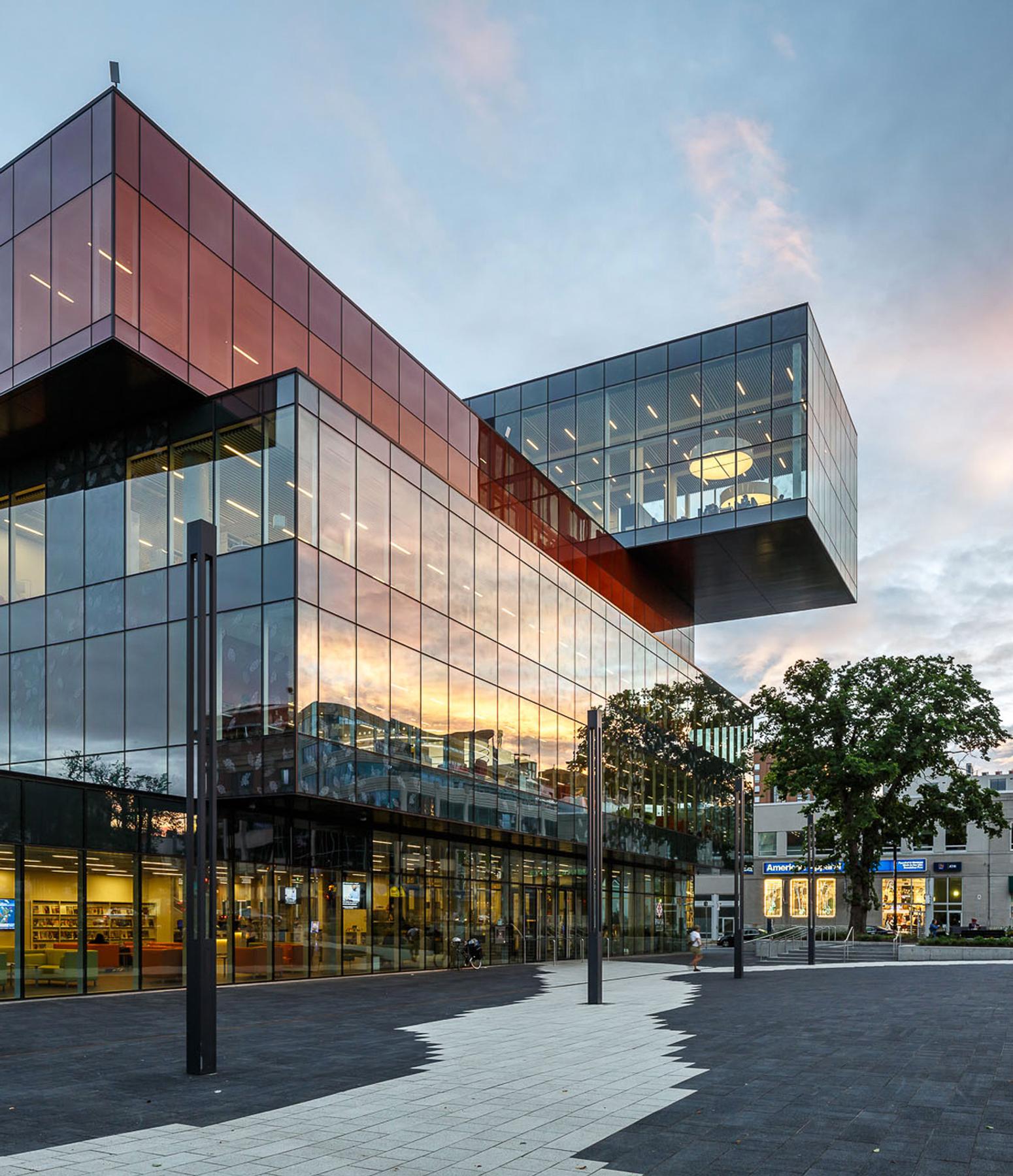 The Halifax Central Library is the municipality’s centre of information and knowledge; a place where people from diverse backgrounds can meet, learn, discover, and share in the democratic act of enjoying free and equal access to information. The new six-level building is located in the retail heart of Halifax on Spring Garden Road. The building contains one level of below grade parking, a five-level reinforced concrete open atrium structure, cladding almost entirely of glass, a green roof, greywater recycling and central services heating. Development of two public plazas, north and south of the library, were also integrated into this project.