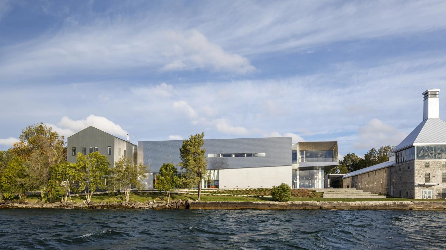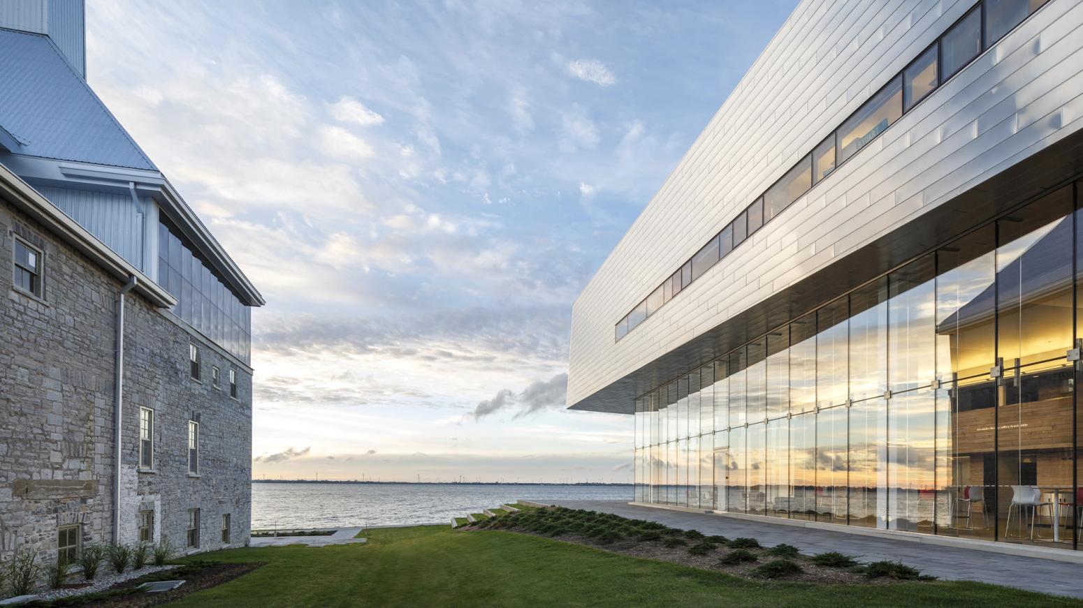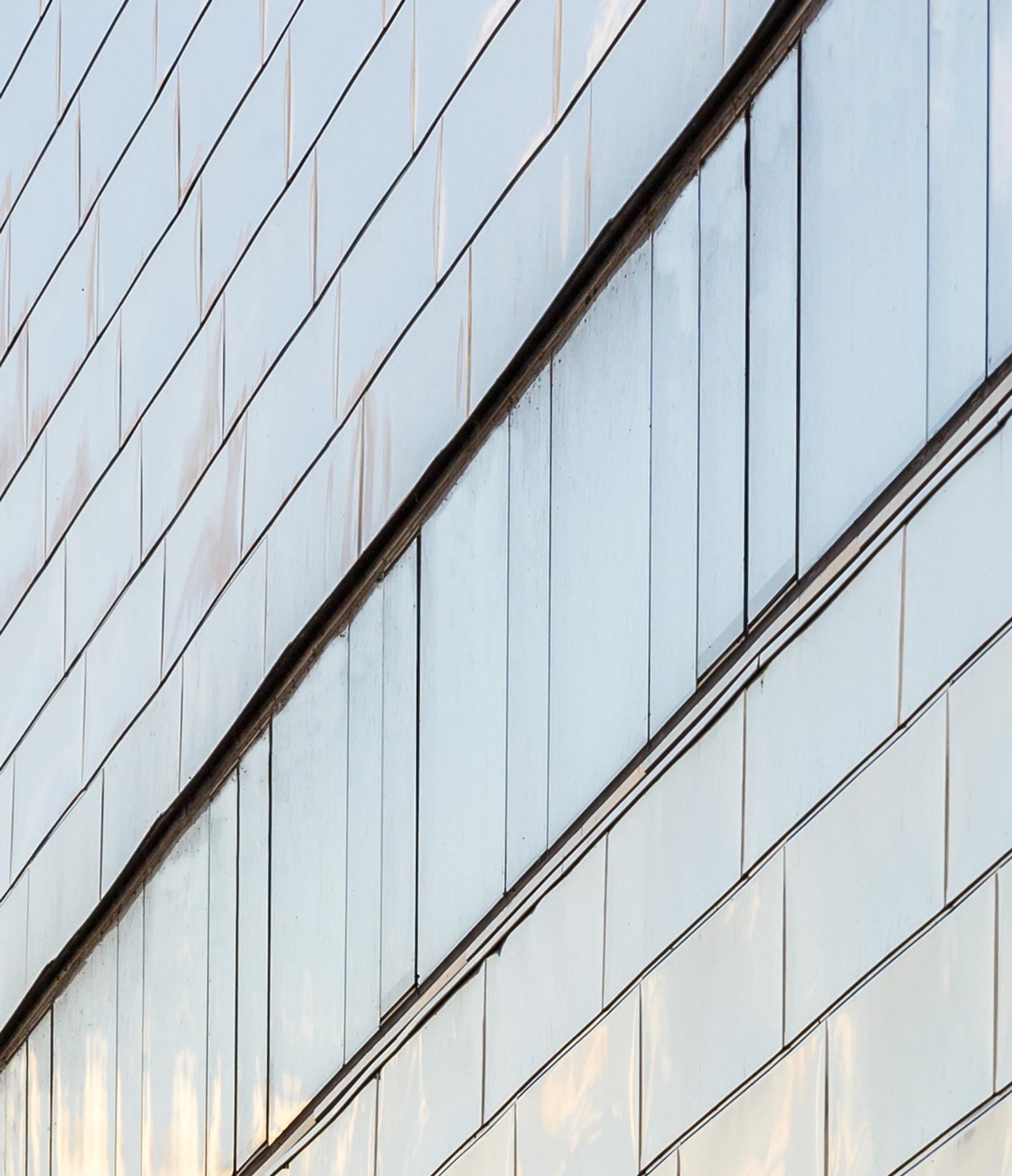 The interior consists of classrooms and office space for the school music department along with a 550 seat concert hall including recording rooms, 90 seats film screening room and 100 seats studio theatre an art gallery room, green room, music studio room, library, student lounges, and meeting rooms. The exterior consists of historic masonry, zinc panels and stainless steel soffit and built up bituminous roofing.