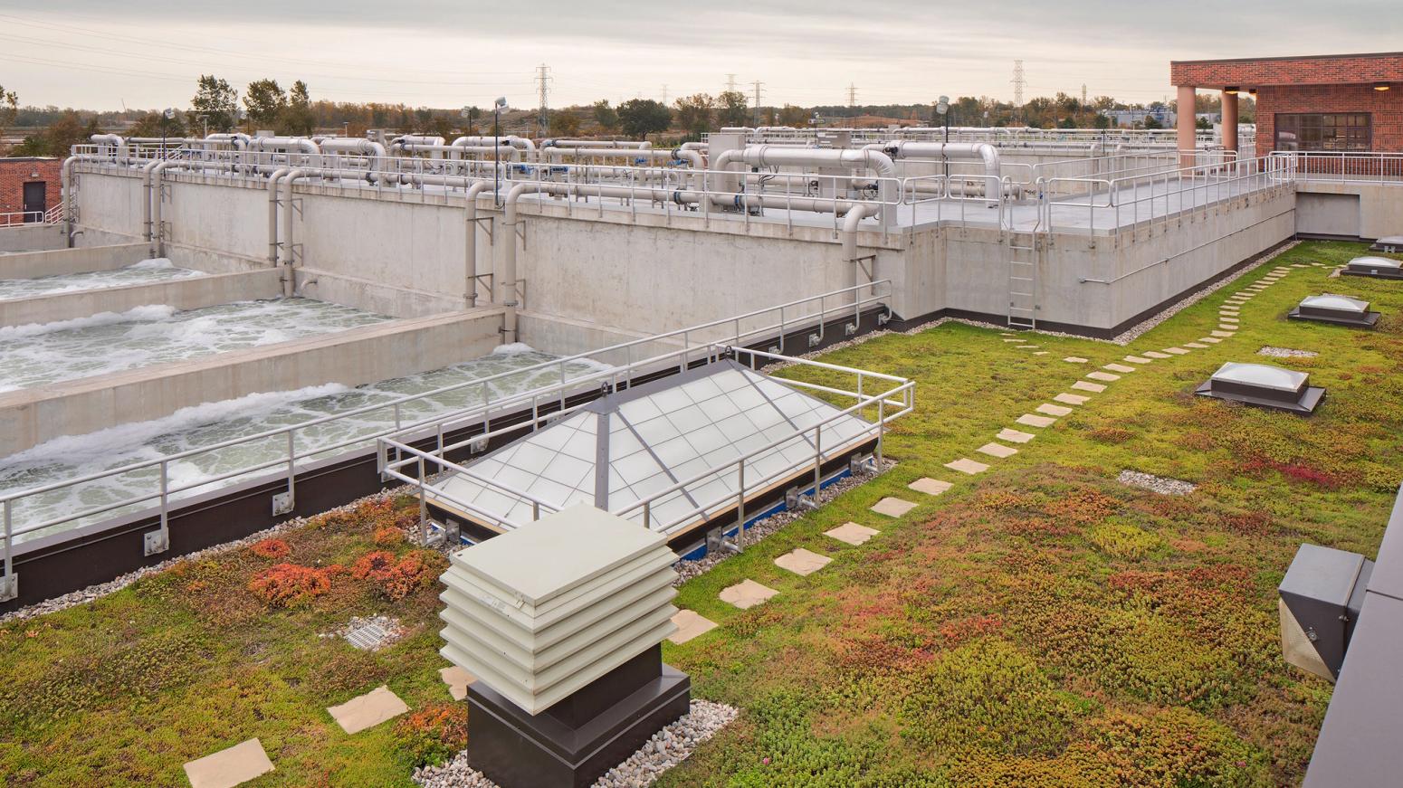 The facility utilizes UV Disinfection technology, which eliminates water-borne pathogens without using chlorine. This allows the building to meet stricter environmental protection standards, as the facility does not release any toxic chemicals, leak any chlorine gas into the community or endanger any plant staff members. The use of UV Disinfection technology also allows the facility to save money.