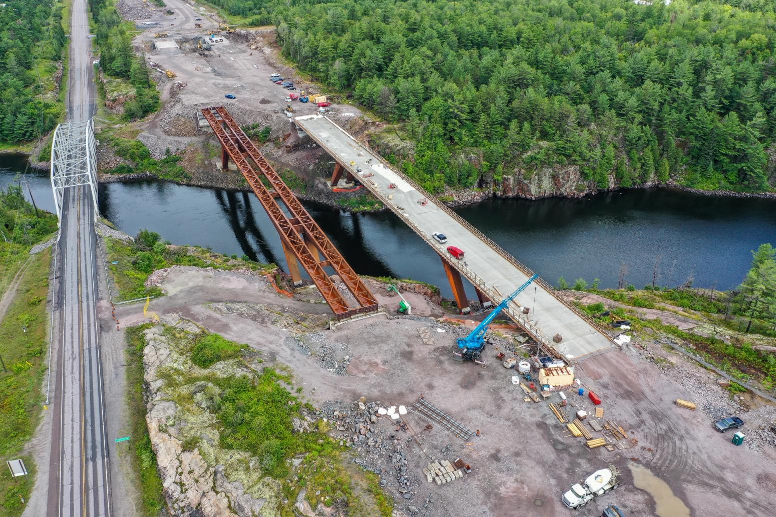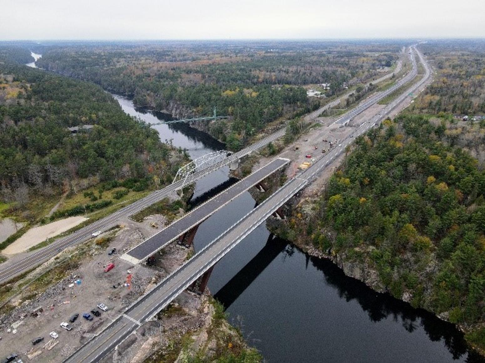 The project was a six-year build for Looby, working in a subcontracting capacity for J & P Leveque Bros. Haulage, the company with the $173.4M contract with the Ontario Ministry of Transportation (“MTO”). Looby, who began the construction in summer 2016, was leading the construction of 10 new bridges, 16 cast-in-place culverts and 13 precast box culverts. Each required component of this project is on schedule. In October of 2020, Looby successfully met the project’s first major milestone, completion of the new northbound lane traffic switchover. Additionally, all culverts, major structural steel erections, and bridge decks have been completed. In December of 2021, work at the three remaining bridge sites (Pickerel River Bridge, French River Northbound Lane, and Pickerel River Road Interchange) was either completed or near completion.