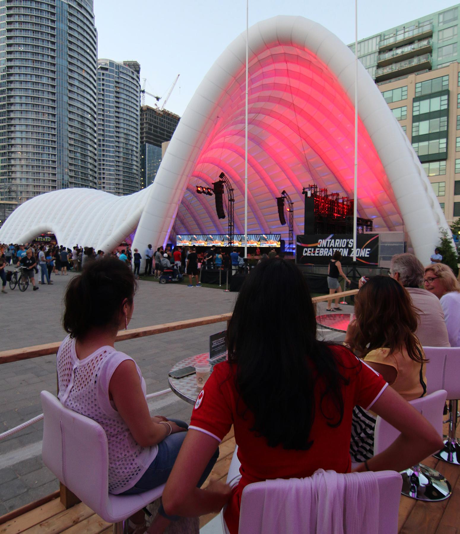 The Ontario’s Celebration Zone, a two temporary pavilions, was a hub for festivities during the Toronto 2015 Pan and Parapan American Games. EllisDon was selected through a competitive process by the Ontario Tourism Marketing Partnership Corporation to bring a dynamic experience to promote Ontario businesses and entertainment during the PanAm and Parapan Games.