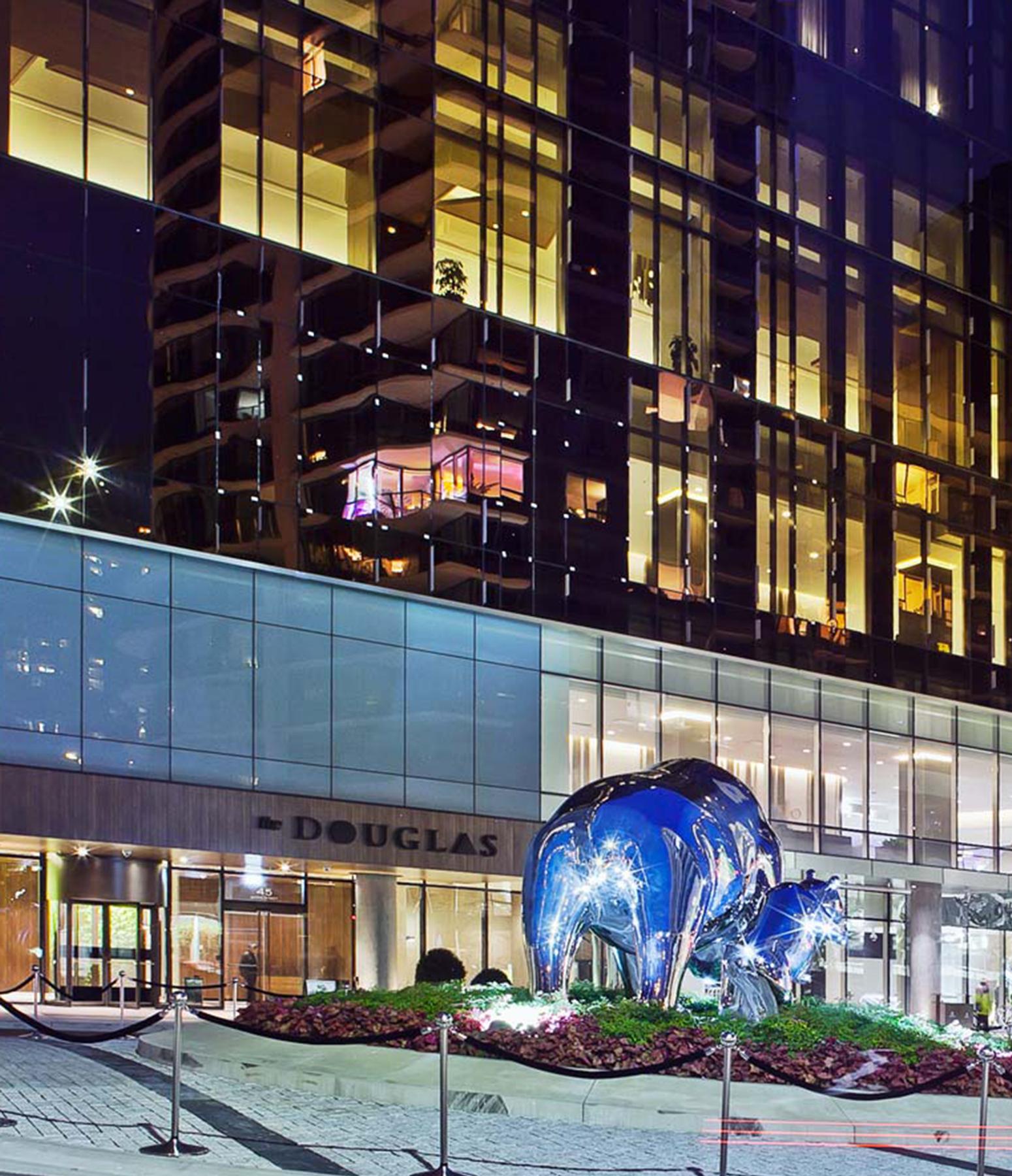 The JW Marriott Towers sits parallel to Pacific Boulevard and varies in height from 16, 17 and 26 storeys above the podium, and the 17-storey Douglas Tower sits parallel to Smithe Street. The podium includes multiple lounges and restaurants, 2,000 square feet of gaming area, 70,000 square feet of meeting space, pre-function and conference space, a 6,000 square foot spa, and a fitness facility. This new multi-use urban resort creates an animated streetscape and vibrant outdoor gathering space for the community and visitors, and provides convenient connections between Yaletown, BC Place and downtown Vancouver through improved pedestrian walkways. This is Western Canada’s first and only urban resort with hotels, restaurants, lounges and meeting space that is adjacent to a stadium – BC Place.