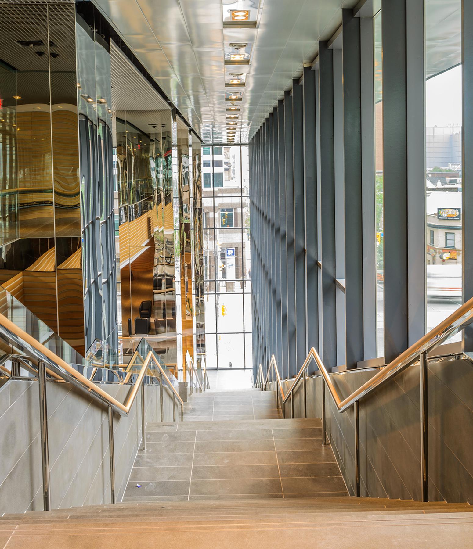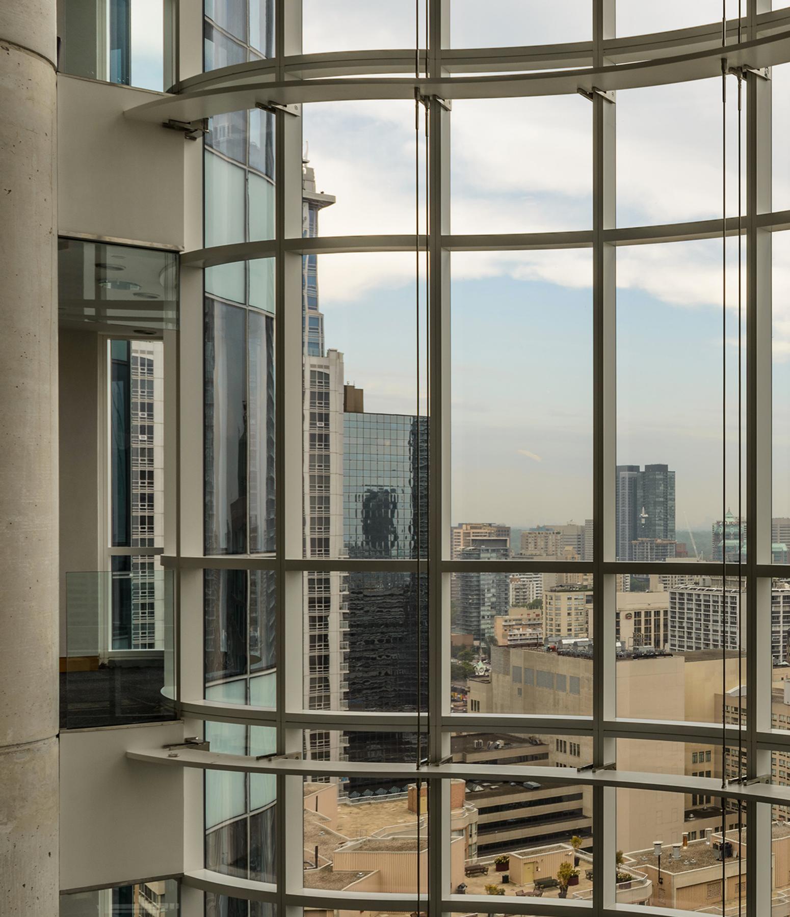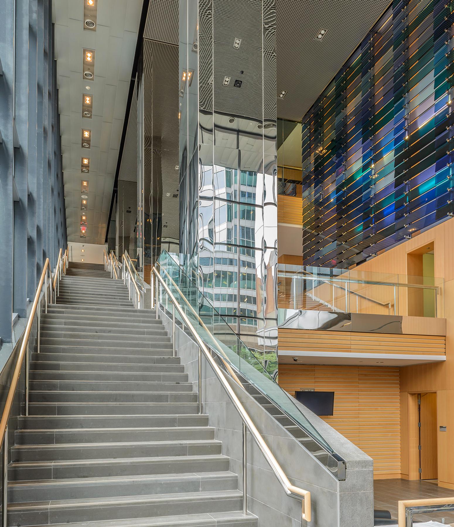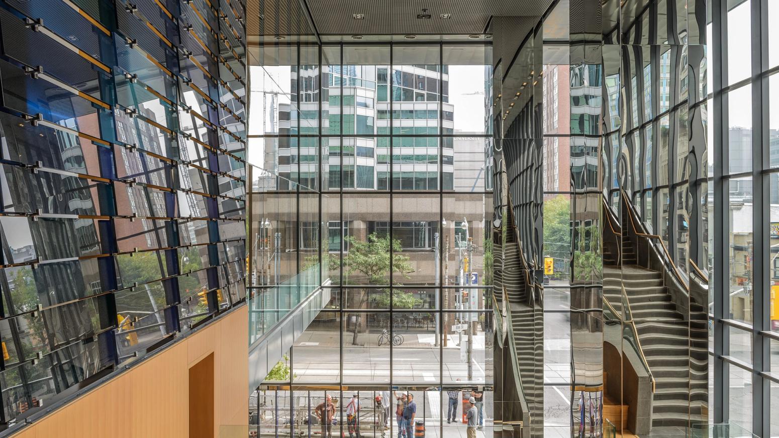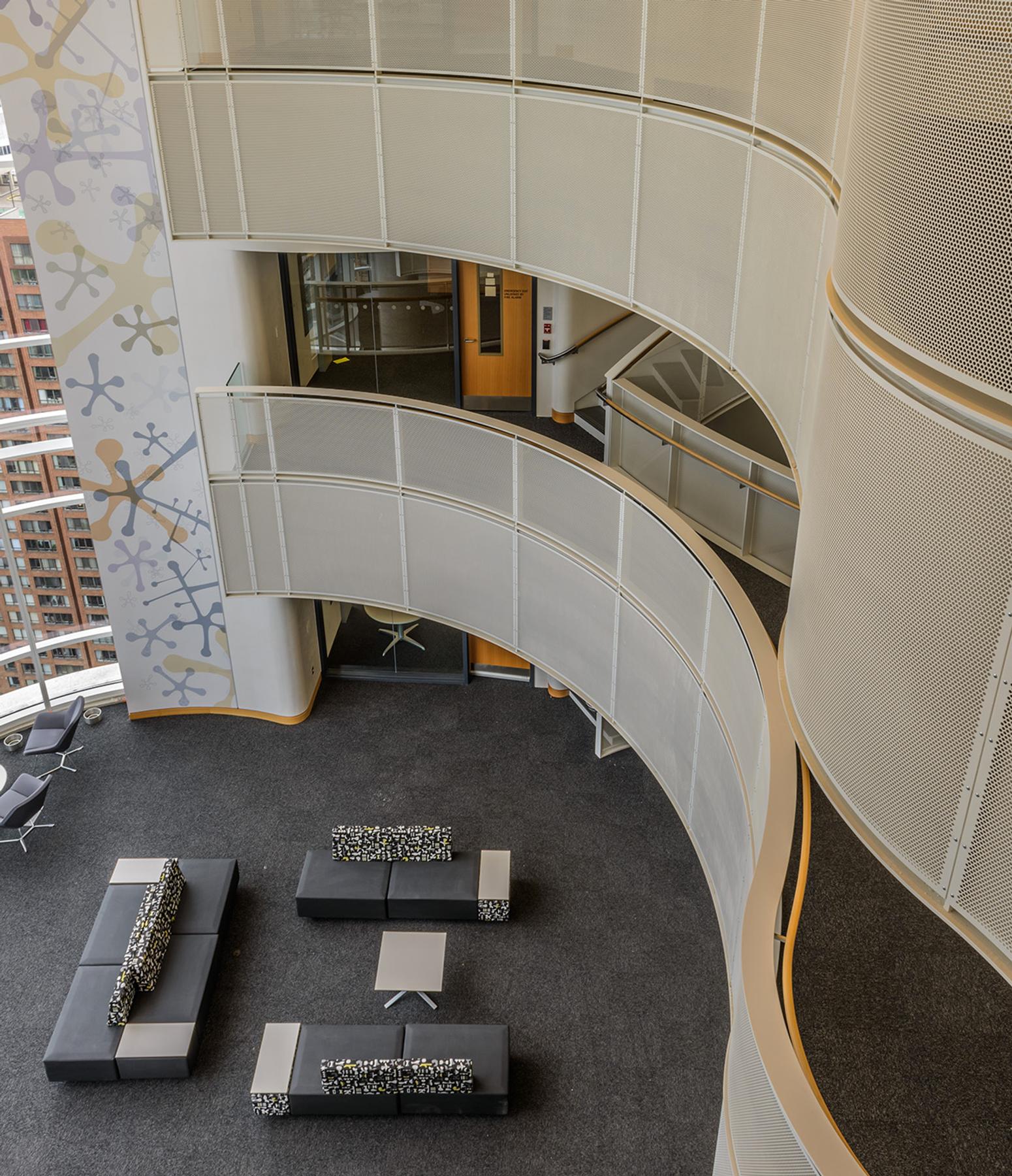 The workspace features natural light penetration to over 90% of the program area, with 20% more vision glass than a typical office building. This also provides expansive views over the city. At the time of completion, the new tower was the tallest laboratory in Canada.