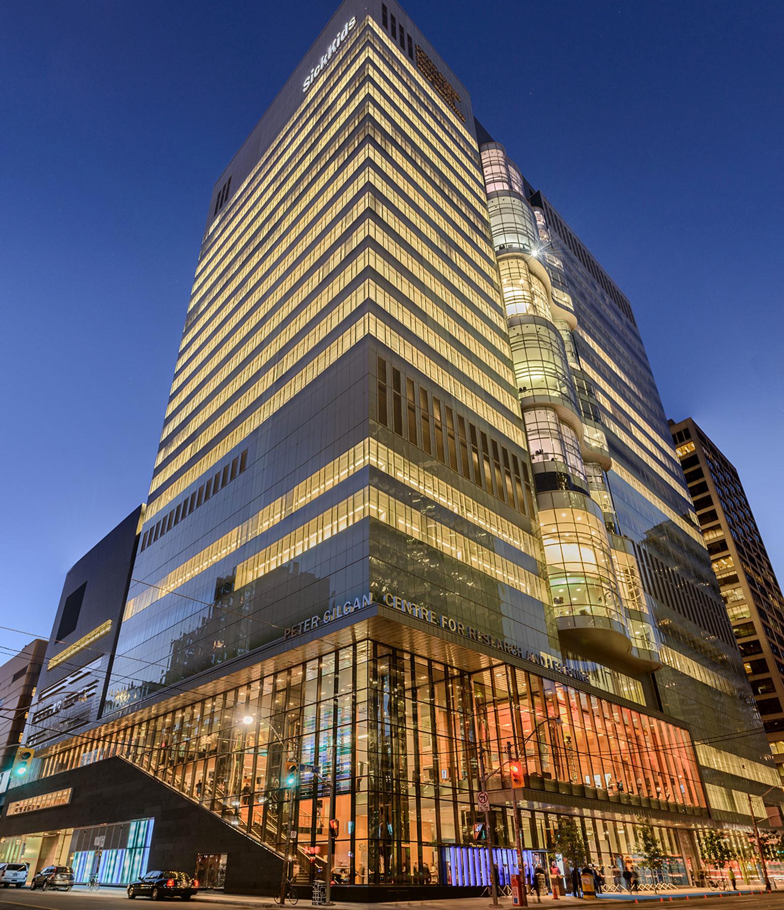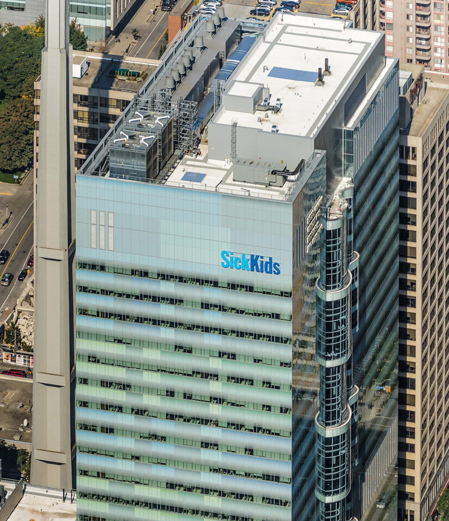 The tower houses 200,000 sq. ft. of wet and dry lab space, a 50,000 sq. ft. vivarium, and learning and teaching facilities, including a 250-seat lecture theatre and flexible learning spaces. Construction included all mechanical, electrical, built-in process equipment, laboratory casework, fume hoods, biosafety cabinets, and communications networks and pathways to connect the Research and Learning Tower to SickKids McMaster and Atrium buildings.
