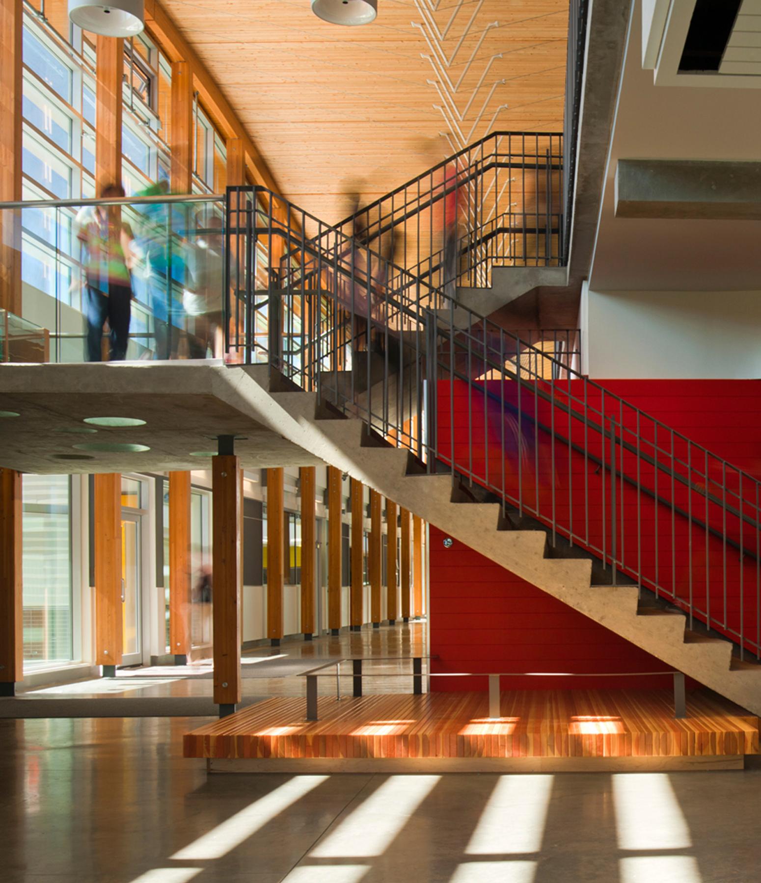 The new Samuel Brighouse Elementary School is the future of child education. School District No. 38 of Richmond, British Columbia were really ahead of its time, when it came to the planning and design of this elementary school. This new two-storey, 50,000 SF school incorporates all of the newest best practices in education facility design, such as 21st Century Learning, sustainability, improved health and well-being, community connectivity, great outdoor space and enhanced school spirit.