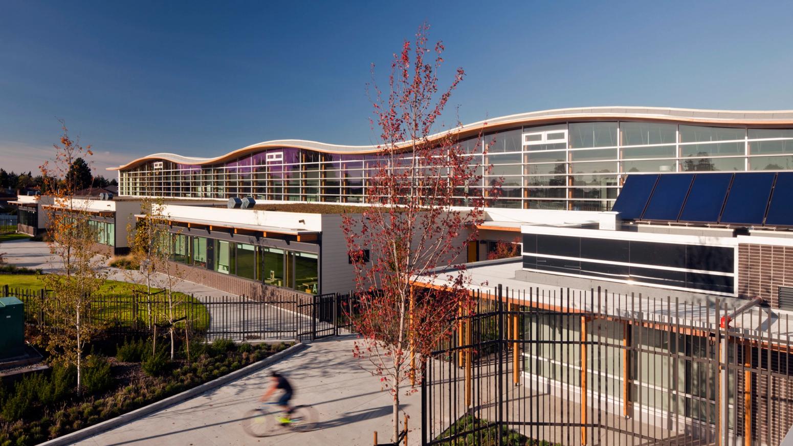 The Samuel Brighouse Elementary School Project was envisioned from the beginning to be a model of sustainability for the district and community. The goals established for the project included certification to LEED Gold by the CAGBC, including a major emphasis on the reduction of greenhouse gases from the facility. An energy target of 70 kWhr/SM annually which would be the lowest energy consumption of any school in Canada, was the original energy use target. The greenhouse gas target and subsequent achievement is 80% below the existing facility, thus meeting the BC government target for 2050. The school is constructed of durable and renewable or recyclable materials including BC wood. The landscape has been upgraded to include on site storm water retention ponds, re-naturalization of portions of the site to recall its original environment, and to re-instate habitat for native flora and fauna.