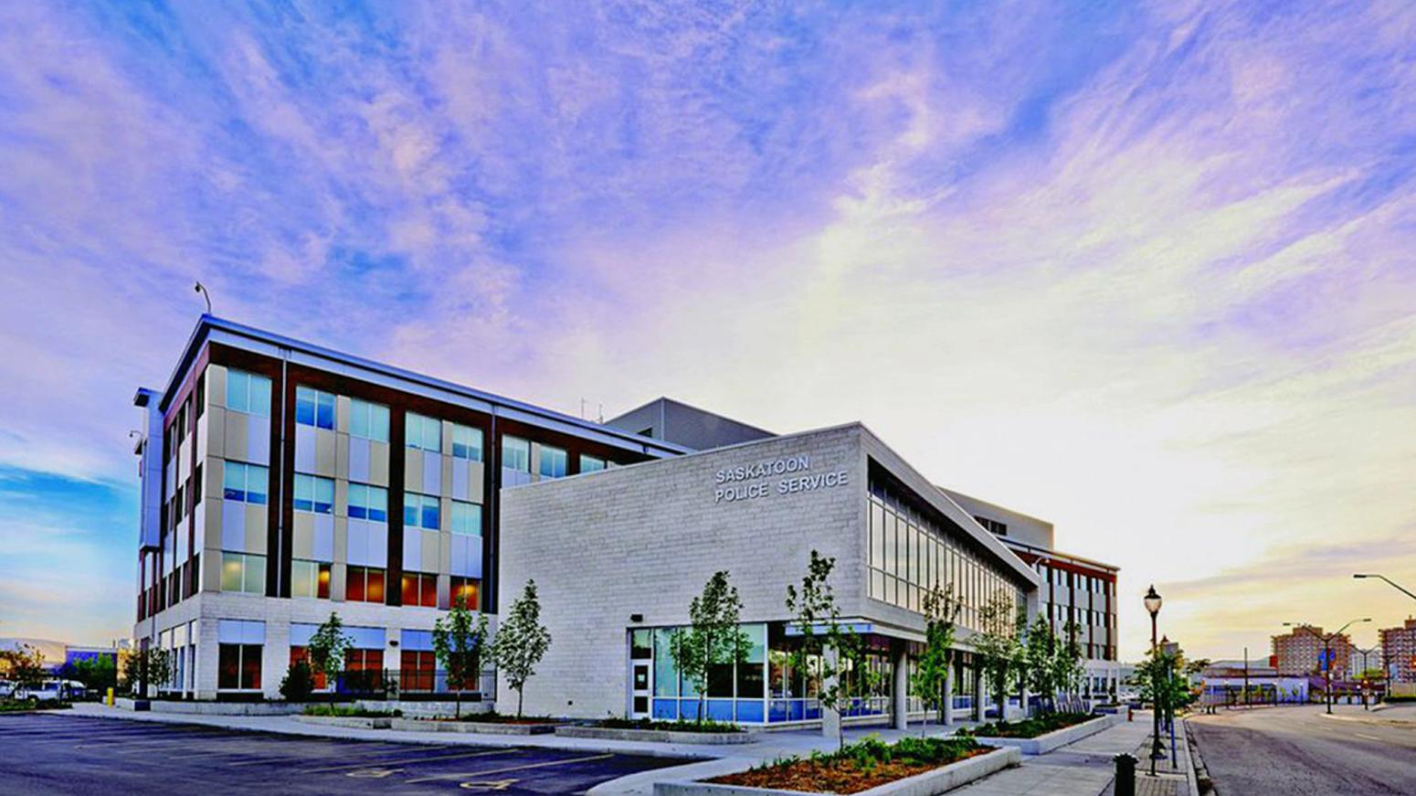 The new Saskatoon Police Services Headquarters is a four-storey, 393,000 square foot facility that includes a pavilion-style building adjacent to the entrance, a community room, a 911 communication centre, a ground sally port, a detention centre, forensic labs, an indoor firing range, K9 facility, training rooms and a police car wash bay. The facility also needed 800 parking spaces during all seasons (200 for police vehicles), which was achieved by adding snow chutes to the exposed, upper level of the parkade so that the accumulation could be pushed over the edge of the roof.