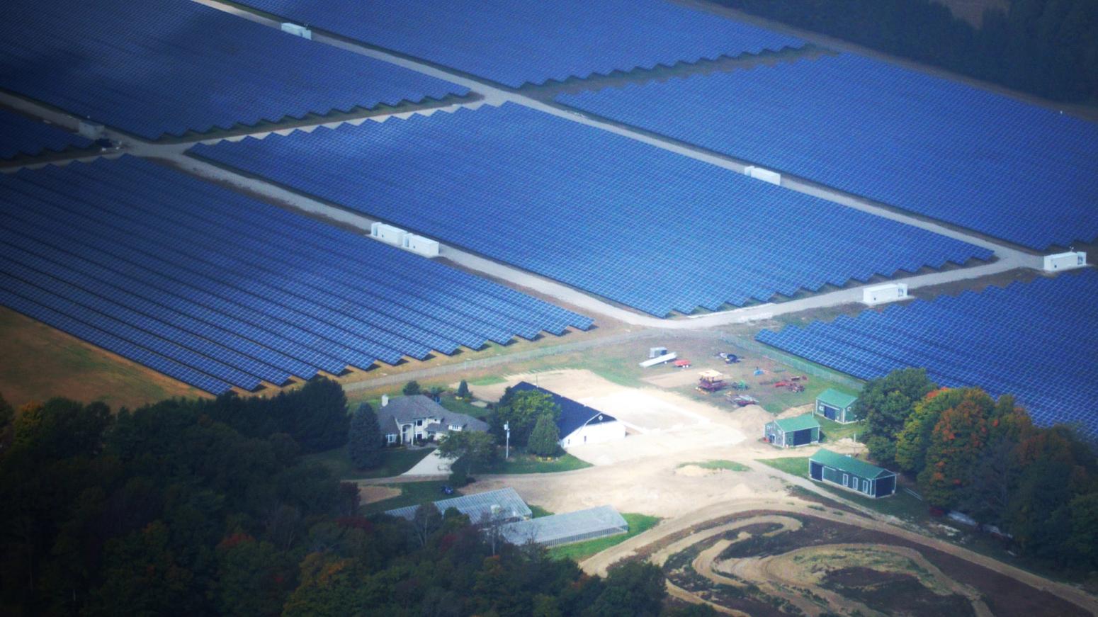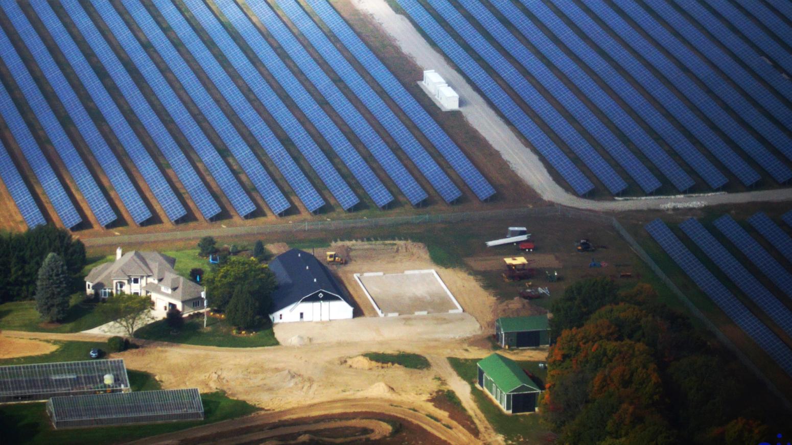 This 50 hectare solar energy farm was constructed on an aged tobacco farm in Southwestern Ontario. The project produces 14.2 MW DC of ground-mounted solar energy, through a 17 km underground transmission line, that connects to a new high voltage sub-station, and 50,000 solar panels that are a standard size of 1.8 m by 1 m. The numerous rows of solar panels are mounted on aluminum racks and fastened to galvanized steel posts with helical screws.