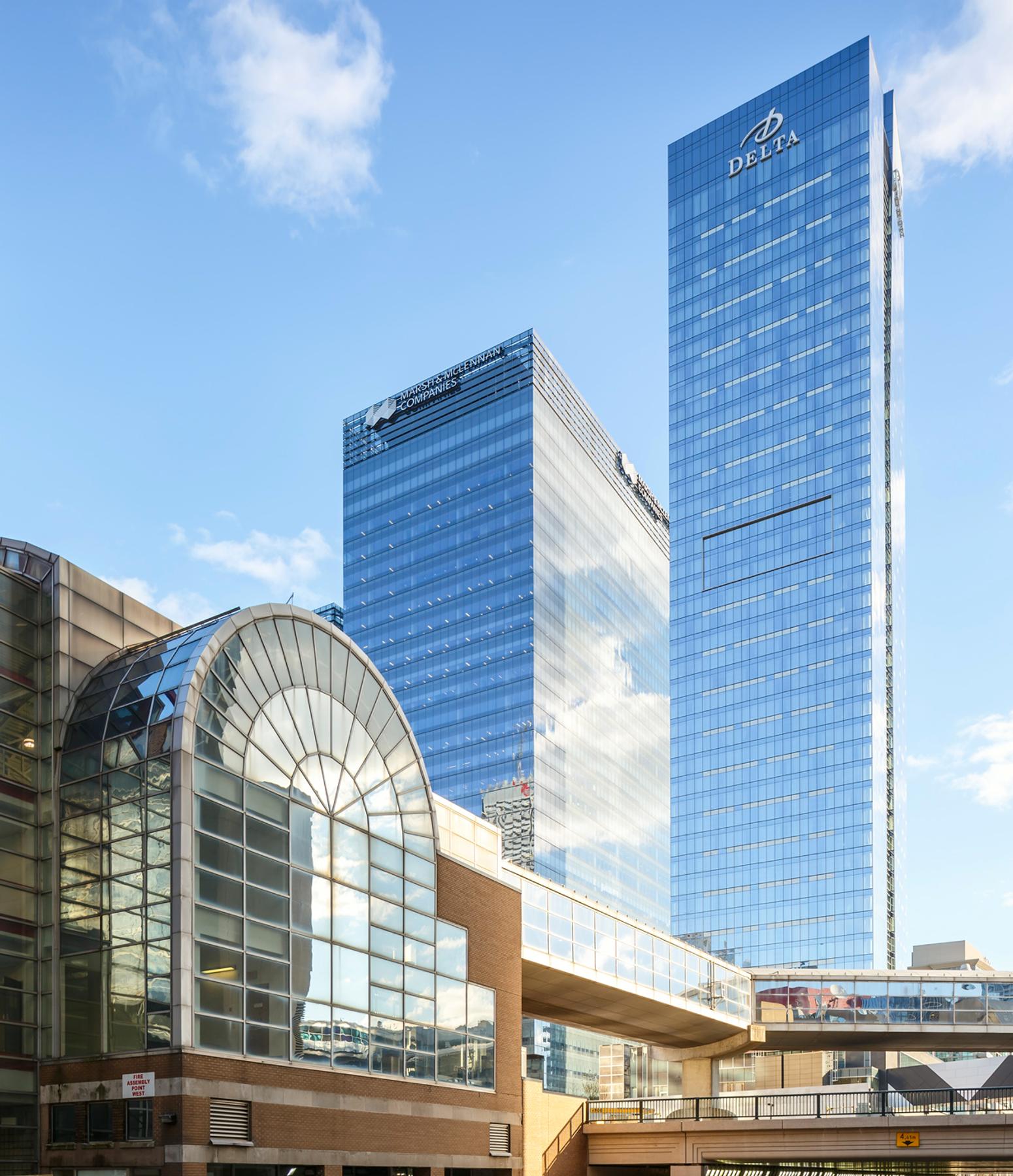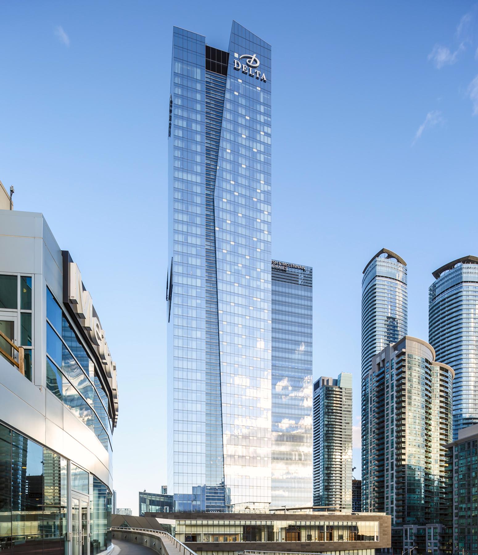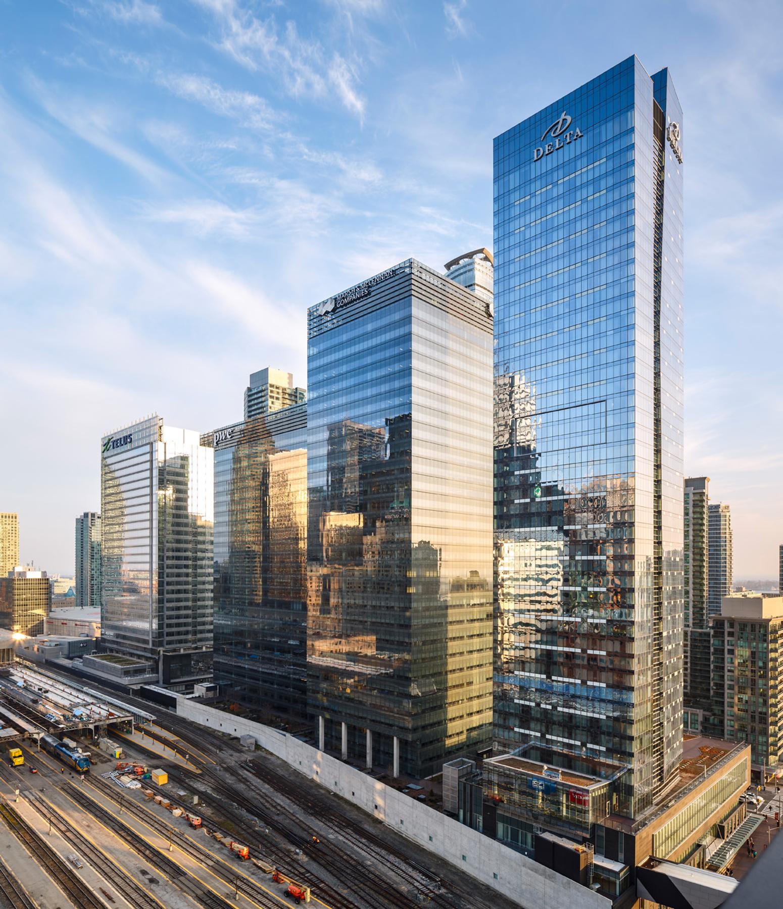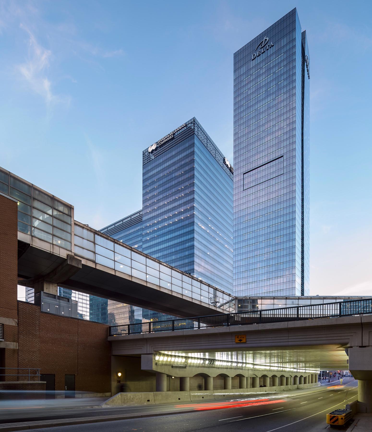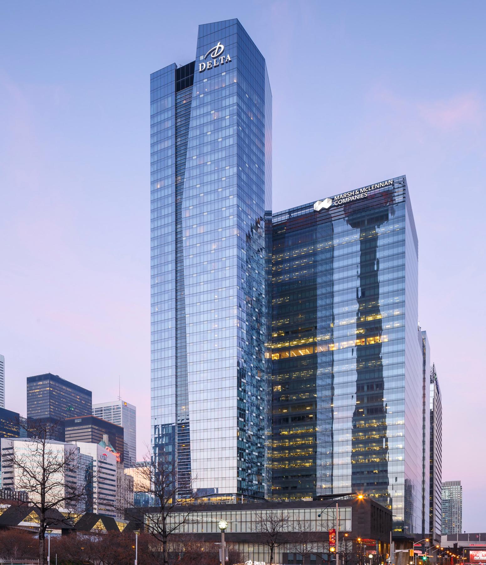 The Delta Hotel connects to the two office towers and features 567 oversized rooms and includes 24 luxurious extended-stay suites with full kitchen, technologically advanced meeting and conference facilities with a 6,500 SF ballroom with floor to ceiling windows, extensive fitness and spa facilities, including an indoor pool, wireless capability from top to bottom, and contemporary dining options on the ground floor.