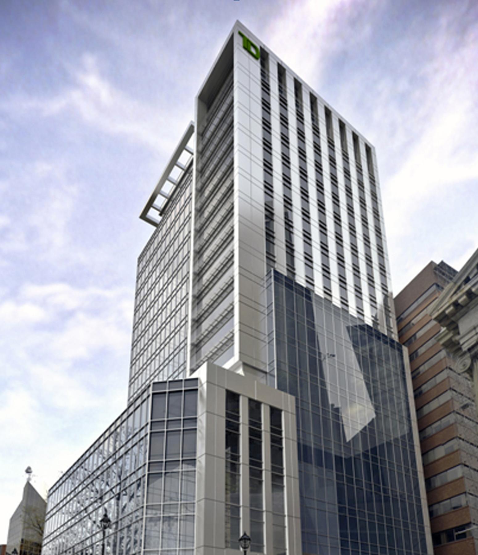 The TD Tower is an 18-floor commercial office tower built in 1974 located in downtown Halifax. EllisDon was awarded the contract which encompassed an expansion, renovation and remodeling. The scope of work includeded replacing the existing exterior glass with new high performance glass, new high efficiency mechanical and electrical systems, which reduces operating costs, and three new storeys added to the existing roof.