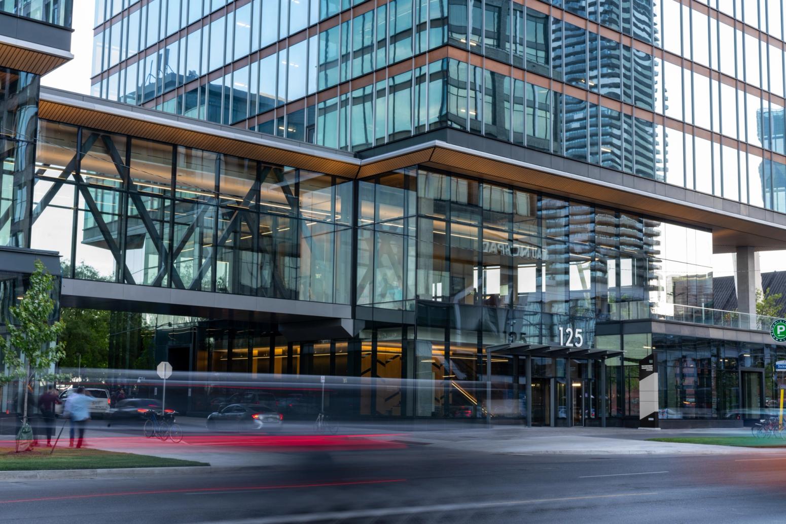 The Waterfront Innovation Centre project involves the construction of a new 12-storey office building, connected to a second 11-storey office building by a bridge on the second level. It is located in downtown Toronto at 125 & 155 Queens Quay East.